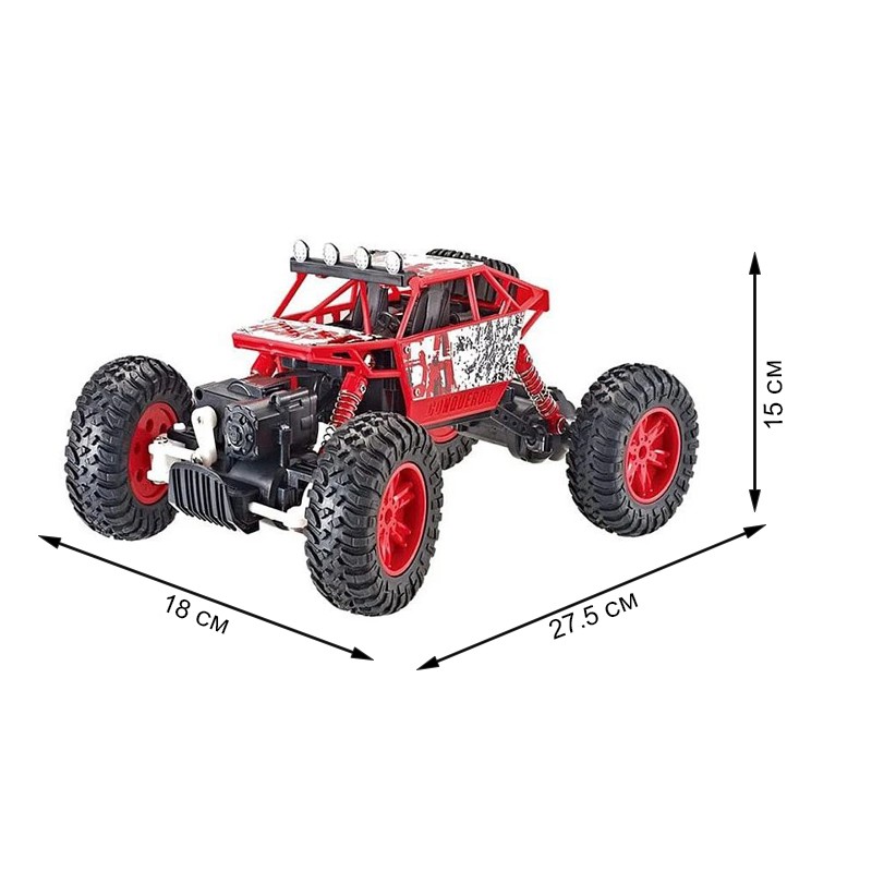 Masinuta off-road are o scara 1:18 si se conduce cu ajutorul telecomenzii incluse, aceasta are un semnal stabil, fara interferete si o raza de actiune de pana la 50 m. Este o jucarie perfecta pentru competitii multiplayer. Are o manevrabilitate excelenta si o constructie solida, putand rula pe orice tip de teren, fie ca este vorba de unul pietros, de munte, iarba, nisip, etc. O singura jucarie ofera distractie si adrenalina datorita caroseriei usoare a masinii, stabilizatoarelor 4WD si tractiunii integrale. Cu masinuta rock rover va puteti construi propria cursa cu obstacole in camera sau in curtea casei!