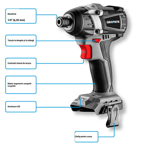 Specificatii Masina insurubat impact compatibila acumulator GRAPHITE