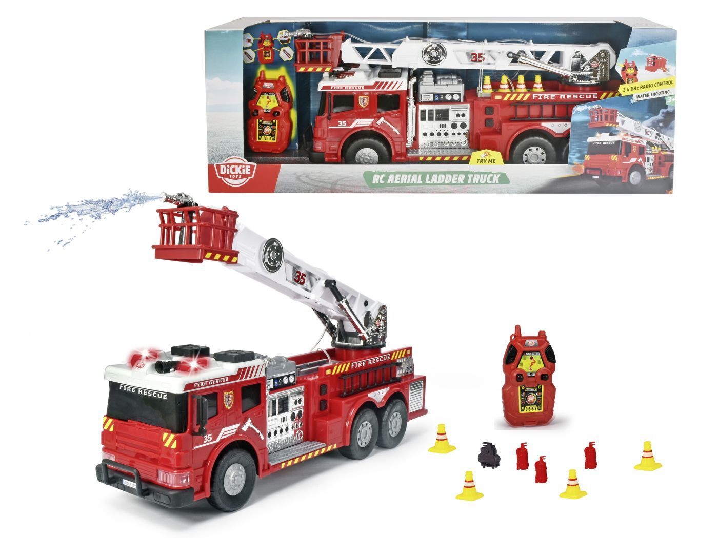 Masina de pompieri cu telecomanda, pulverizare apa si scara 62 cm