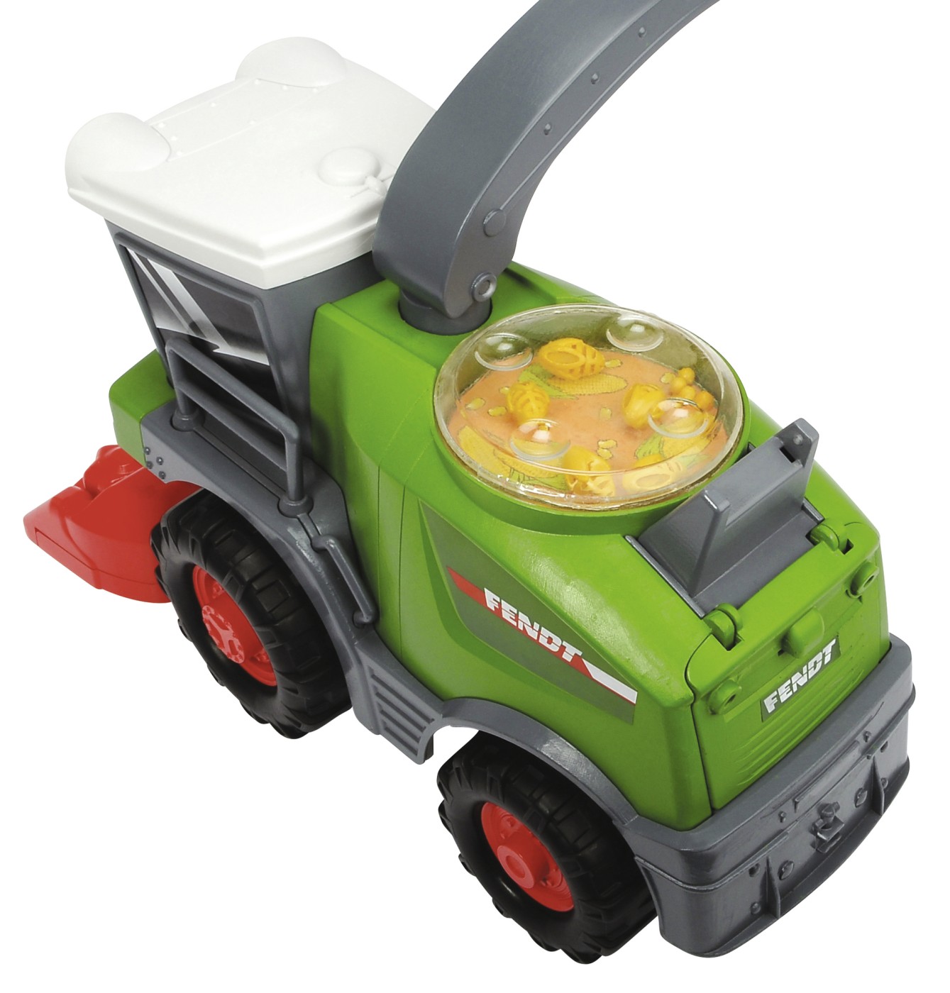 Masina de recoltat Fendt ABC este o jucarie vesela si usor de manevrat, creata special pentru cei mici. Cu un design prietenos, ochi mari expresivi si forme rotunjite, aceasta combina de jucarie pentru copii ii incurajeaza pe cei mici sa descopere lumea prin joaca activa. Bratul pivotant pentru incarcarea recoltei poate fi folosit si ca maner de transport, fiind perfect adaptat manutelor mici.