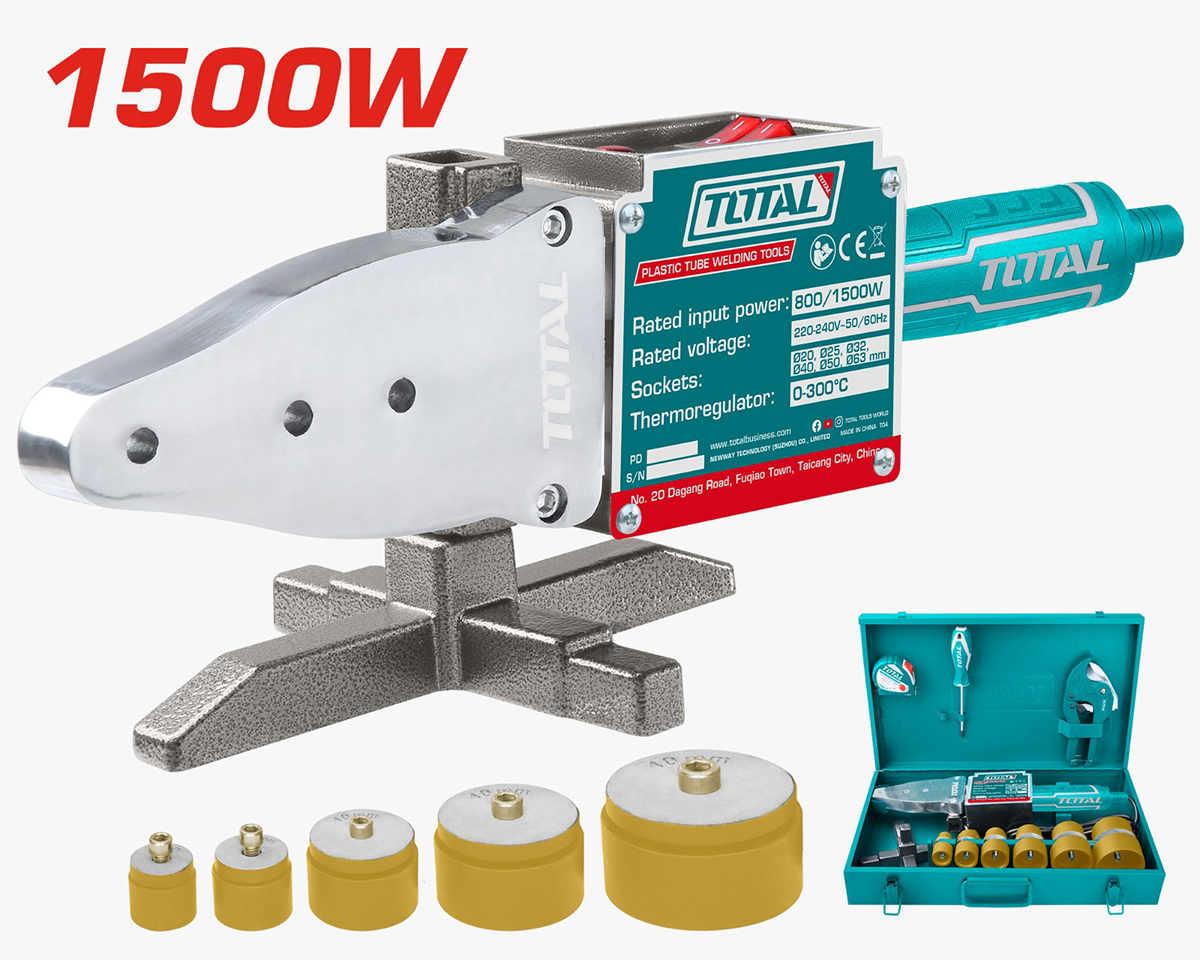 Mașină de sudat țevi PPR/PE Total 800/1500W cu termostat, 20–63 mm
