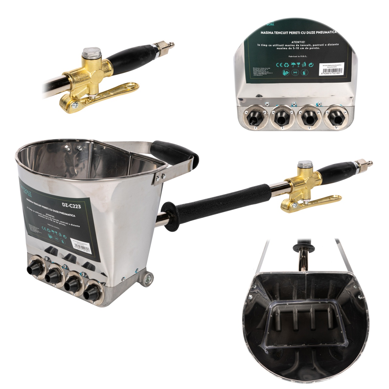 Mașină de tencuit pereți și tavane Detoolz DZ-C223, pneumatică, oțel inoxidabil