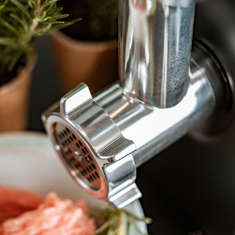 Este realizat din materiale rezistente, usor de dezasamblat si curatat. Aparatul vine, de asemenea, cu un accesoriu pentru carnati si un accesoriu Kebbe, care va permite sa va simtiti ca un bucatar profesionist.