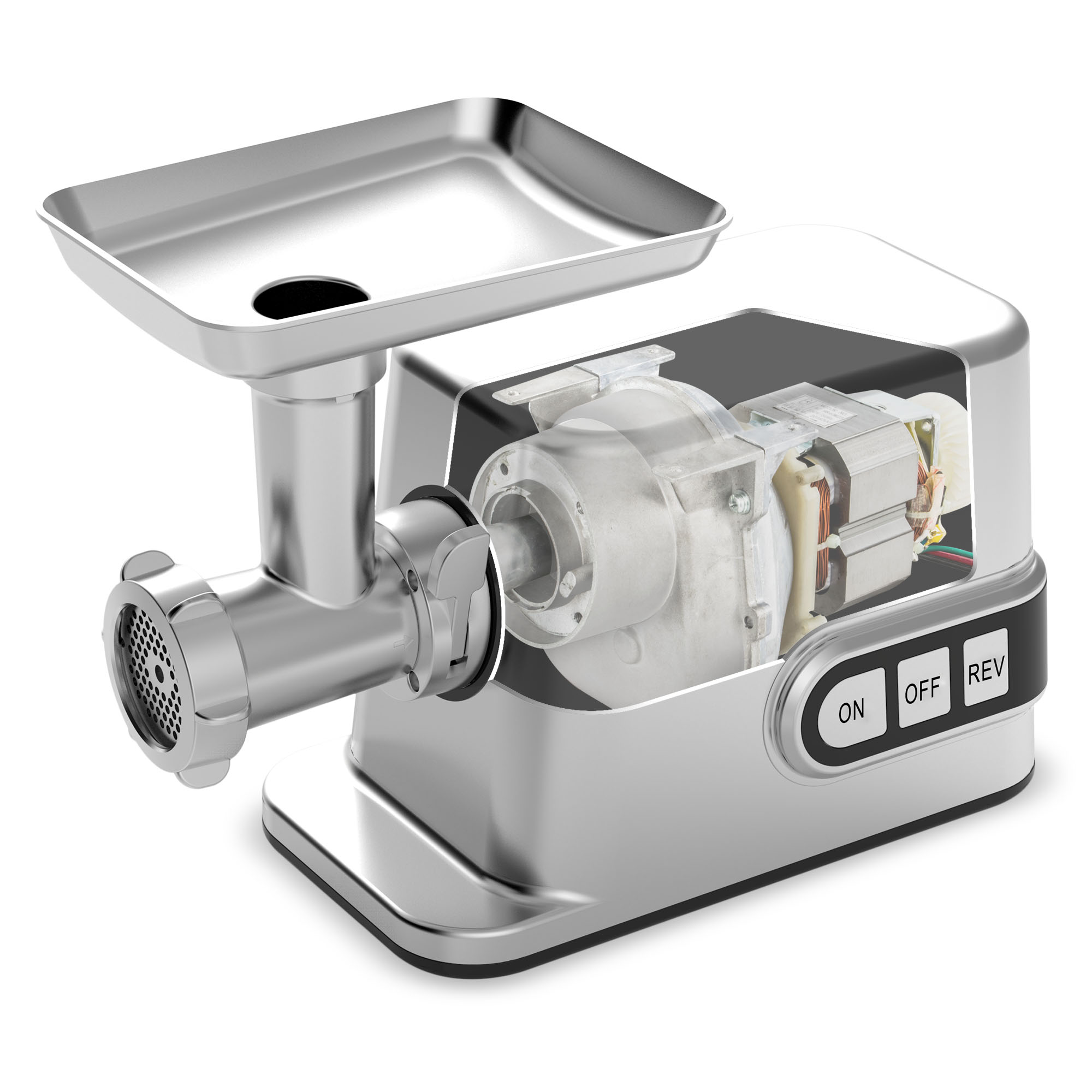 Masina de tocat cu accesoriu de rosii Zass ZMG 10, Putere 3000W, Putere nominala 1200W, Toaca intre 50-70 Kg/ora, Roti dintate metalice, 3 discuri din inox incluse ProDesign DailyAppliances