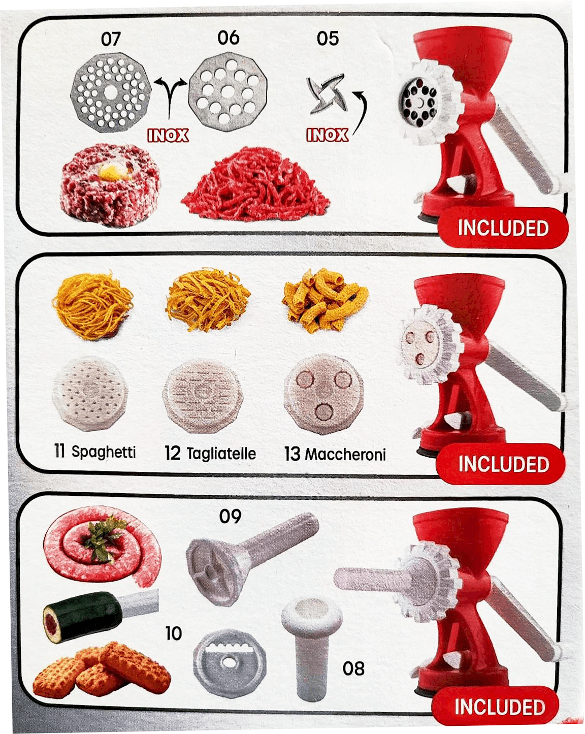 Mașină de tocat manuală 3în1 Rigamonti Mincy pentru carne, paste și biscuiți