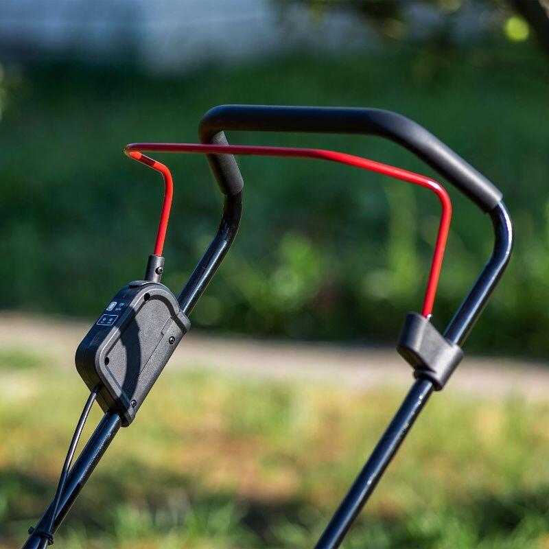 - Designul ergonomic al tuturor componentelor face ca operarea masinii de tuns iarba sa fie convenabila si confortabila. Butonul de pornire/oprire este situat pe maner.