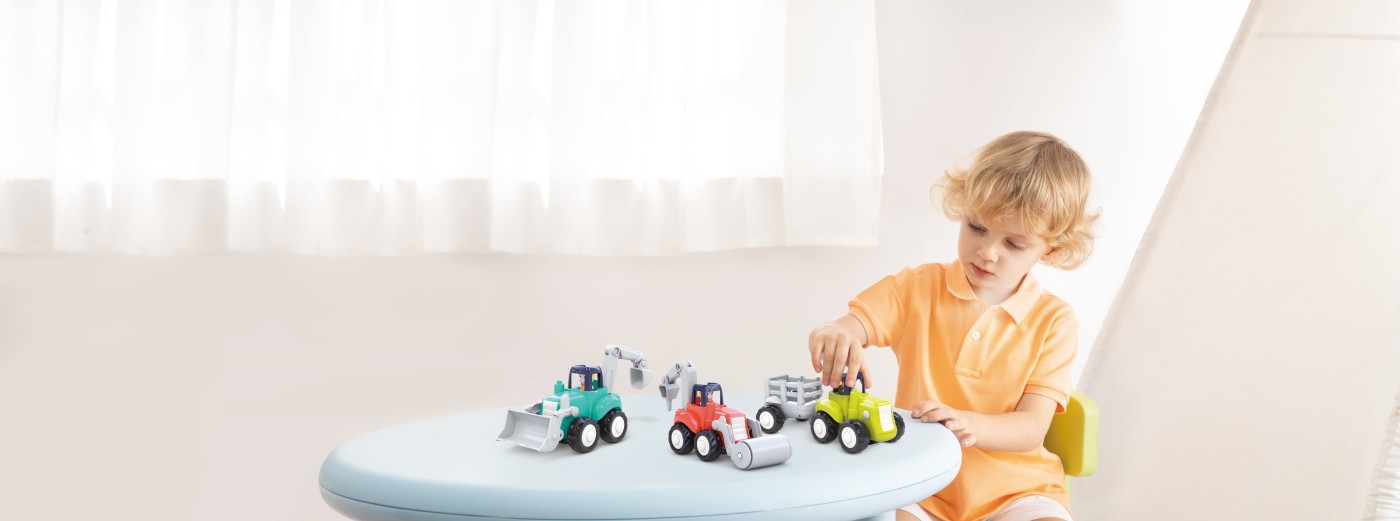 Această jucărie de construcții pentru copii ajută la dezvoltarea coordonării ochi-mână, a motricității fine și a creativității. Prin împingere, copilul activează mecanismul cu fricțiune, iar mașinuța pornește înainte cu ușurință, fără baterii. Părțile mobile contribuie la jocuri de rol captivante și la descoperirea diferitelor tipuri de vehicule de lucru.