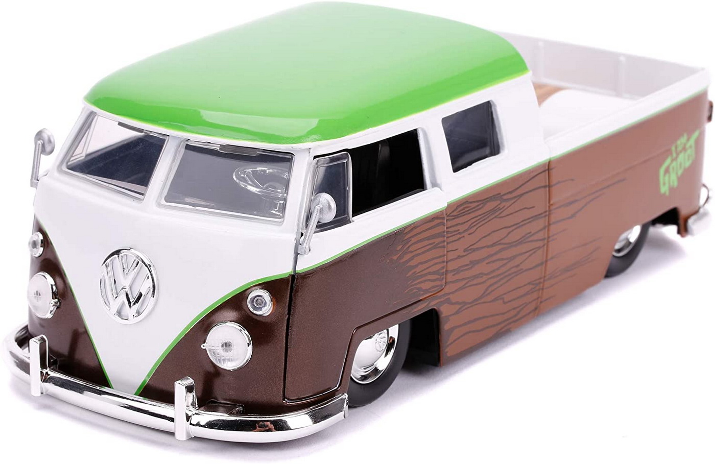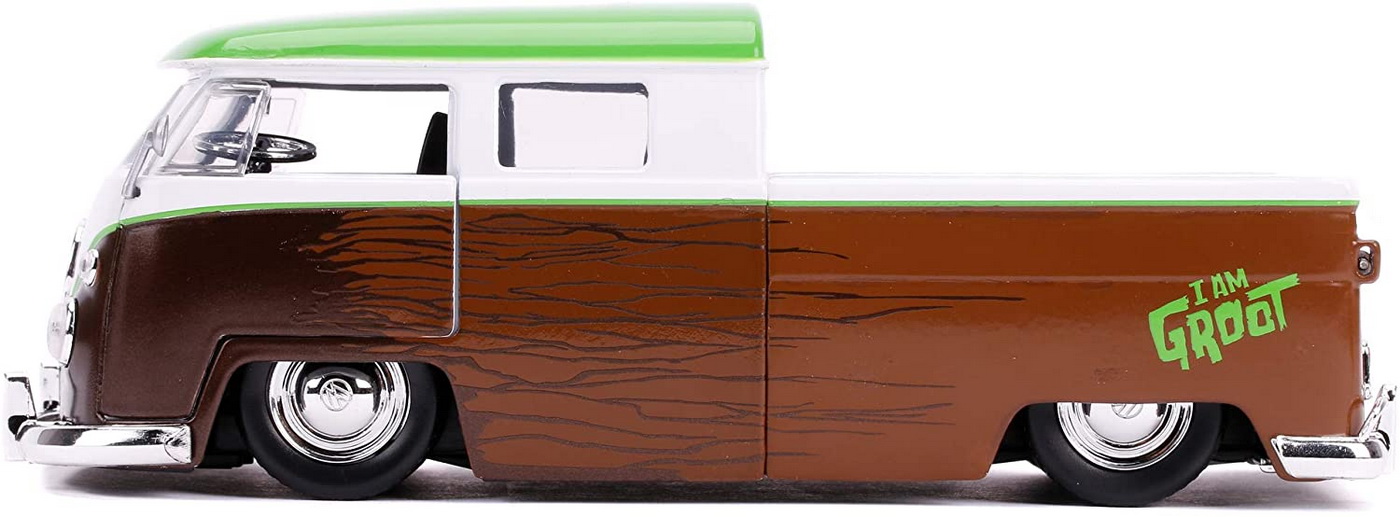 Acest model auto de colectie combina aspectul clasic al camionetei Volkswagen cu personalitatea inconfundabila a lui Groot. Portierele care se deschid ofera un plus de realism si fac experienta de joaca sau expunere si mai interesanta.
