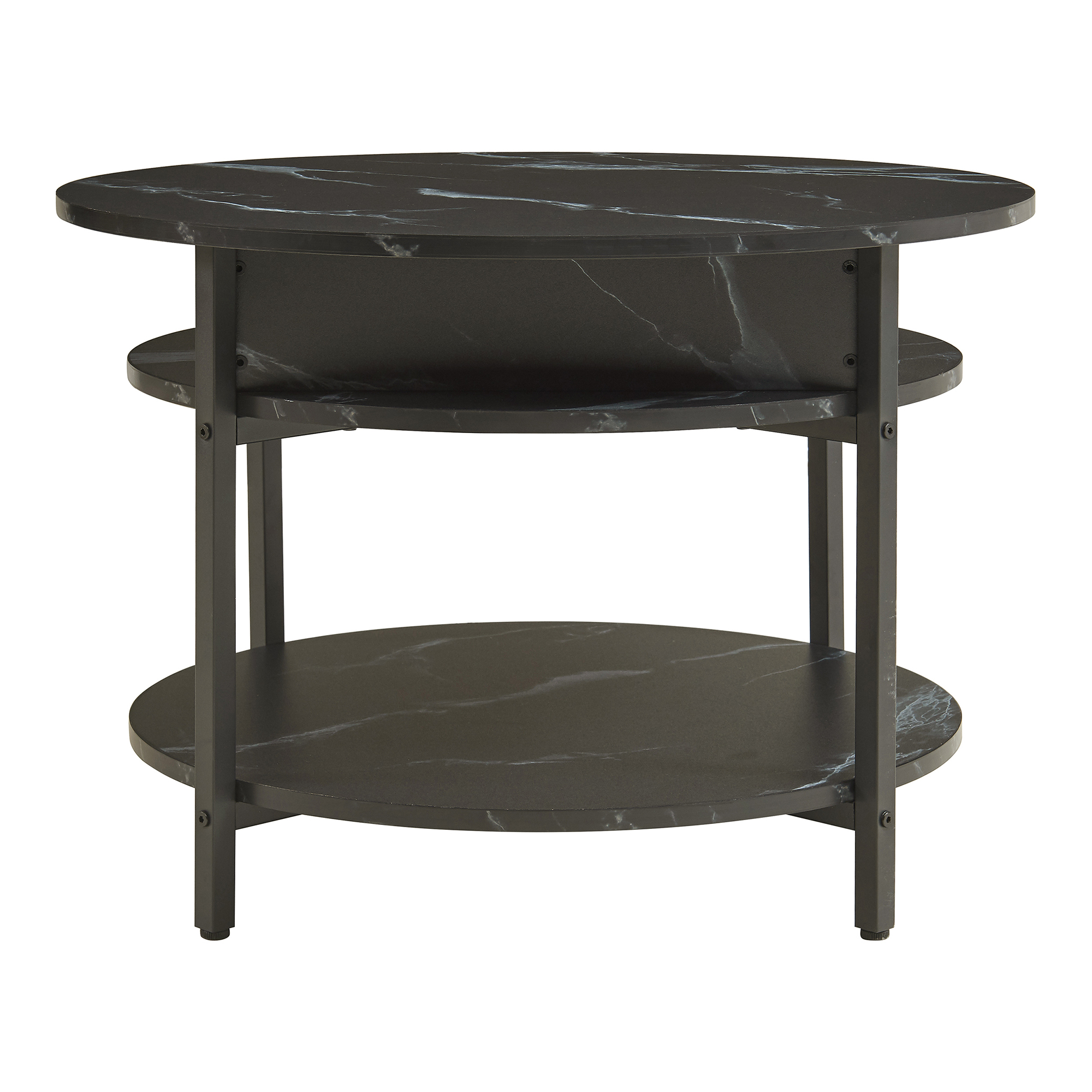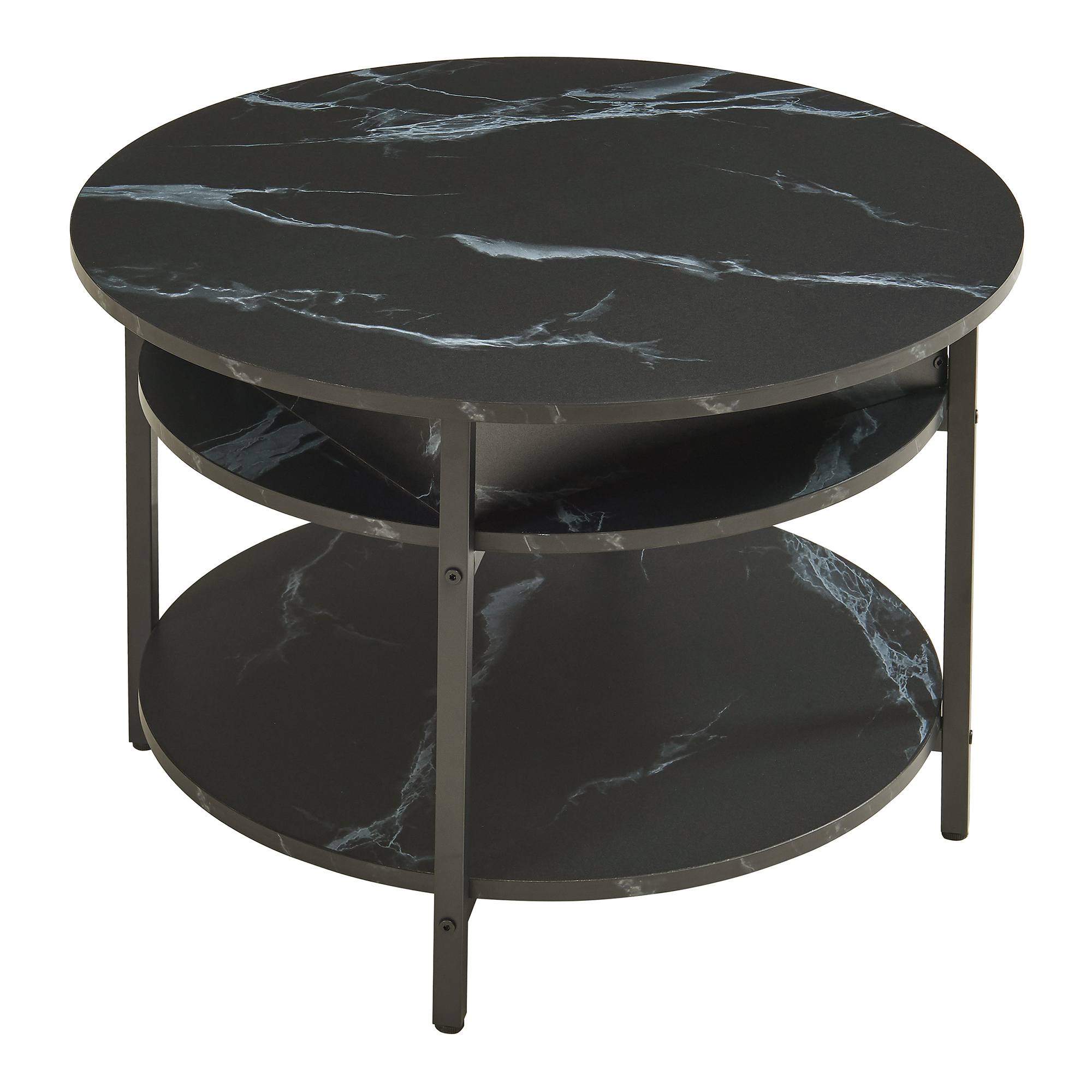 Măsuță de cafea Kandas este alegerea ideală pentru un living modern, unde designul elegant se îmbină perfect cu funcționalitatea de zi cu zi. Finisajul cu aspect de marmură neagră și forma rotundă oferă un plus de stil, iar structura metalică neagră completează armonios decorul.