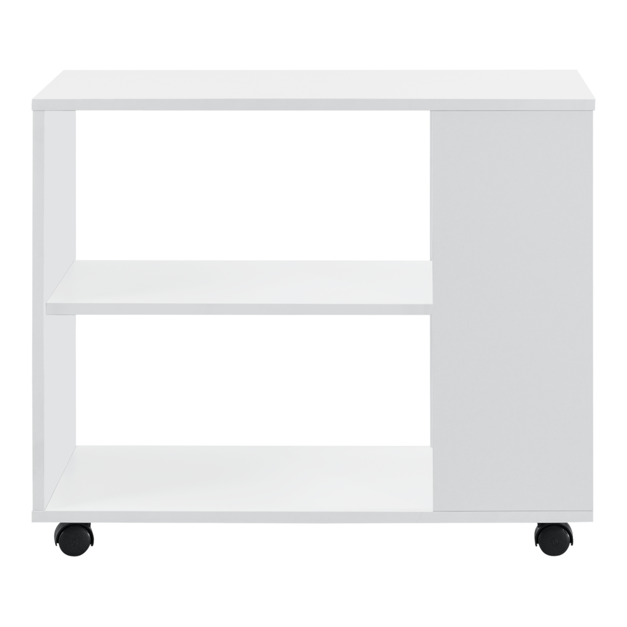 Măsuță de cafea mobilă Älvdalen cu raft și roți blocabile, albă