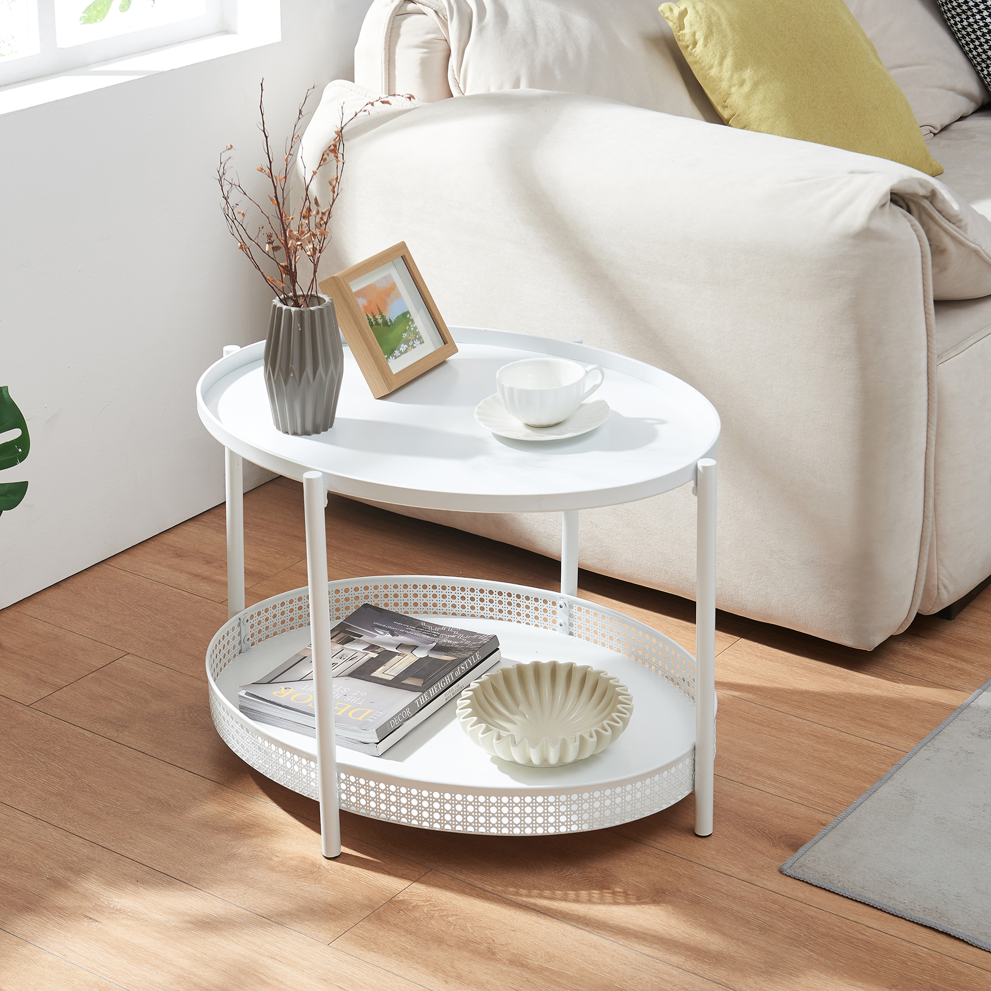 Măsuța de cafea Jäller aduce un plus de eleganță și funcționalitate în orice living. Cu un design modern, finisaj alb și formă ovală armonioasă, această măsuță de cafea metalică se integrează ușor în decoruri contemporane, scandinave sau minimaliste.