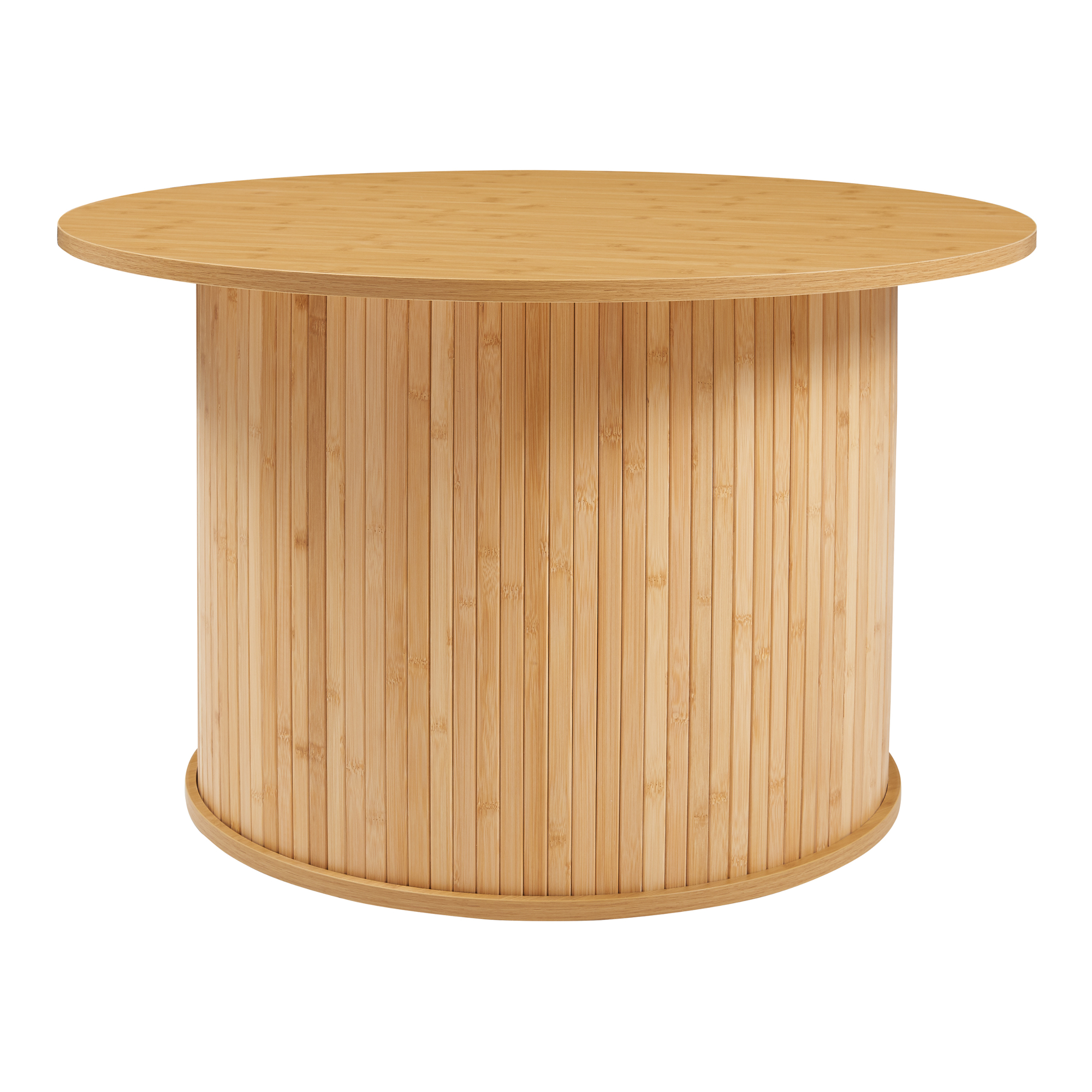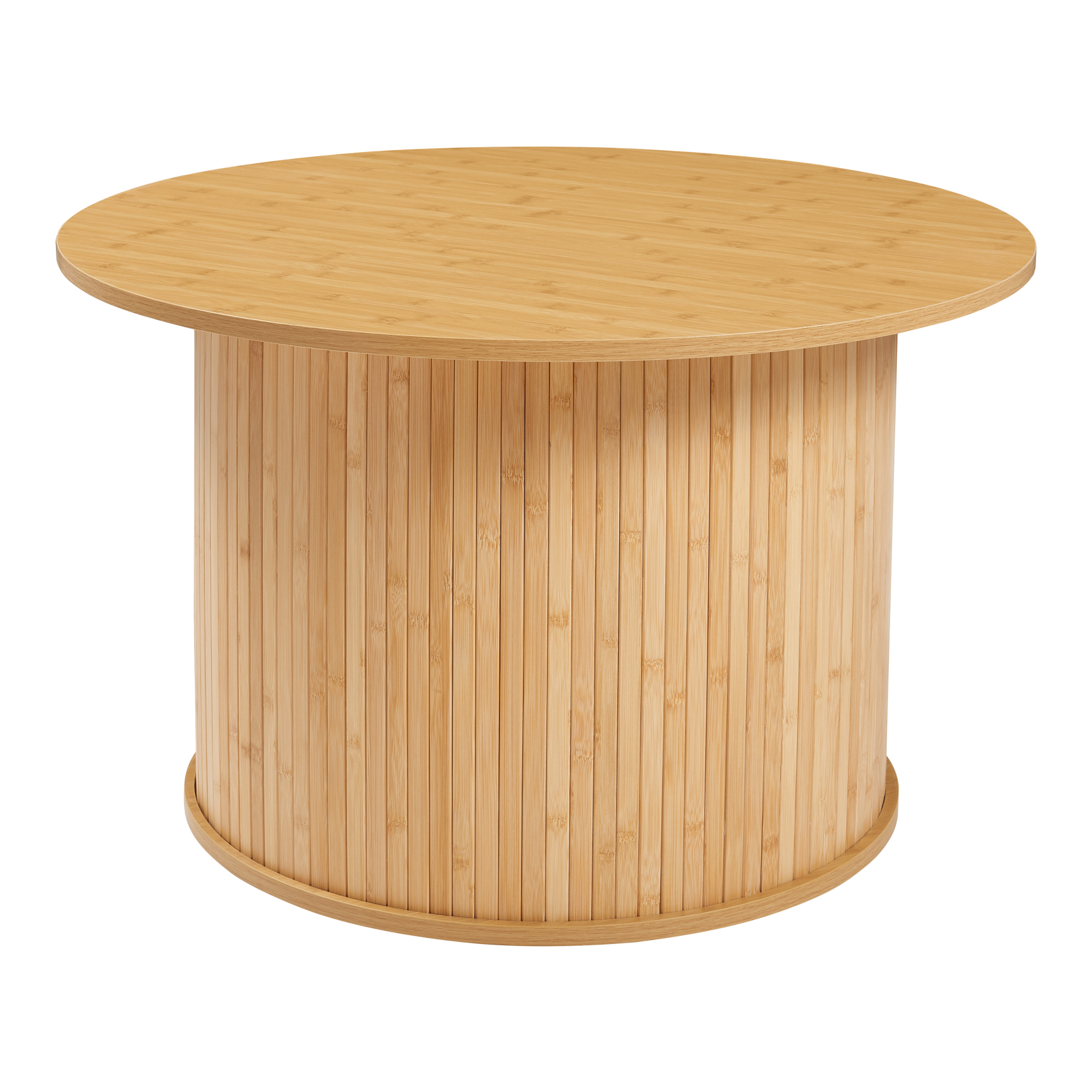 Blatul rotund, ușor supradimensionat, și baza robustă oferă un aspect deosebit și o bună stabilitate în utilizarea de zi cu zi. Realizată din bambus și MDF, măsuța combină aspectul cald al materialelor naturale cu rezistența necesară pentru spațiul de zi. Suprafața este ușor de curățat, fiind potrivită pentru utilizare zilnică.