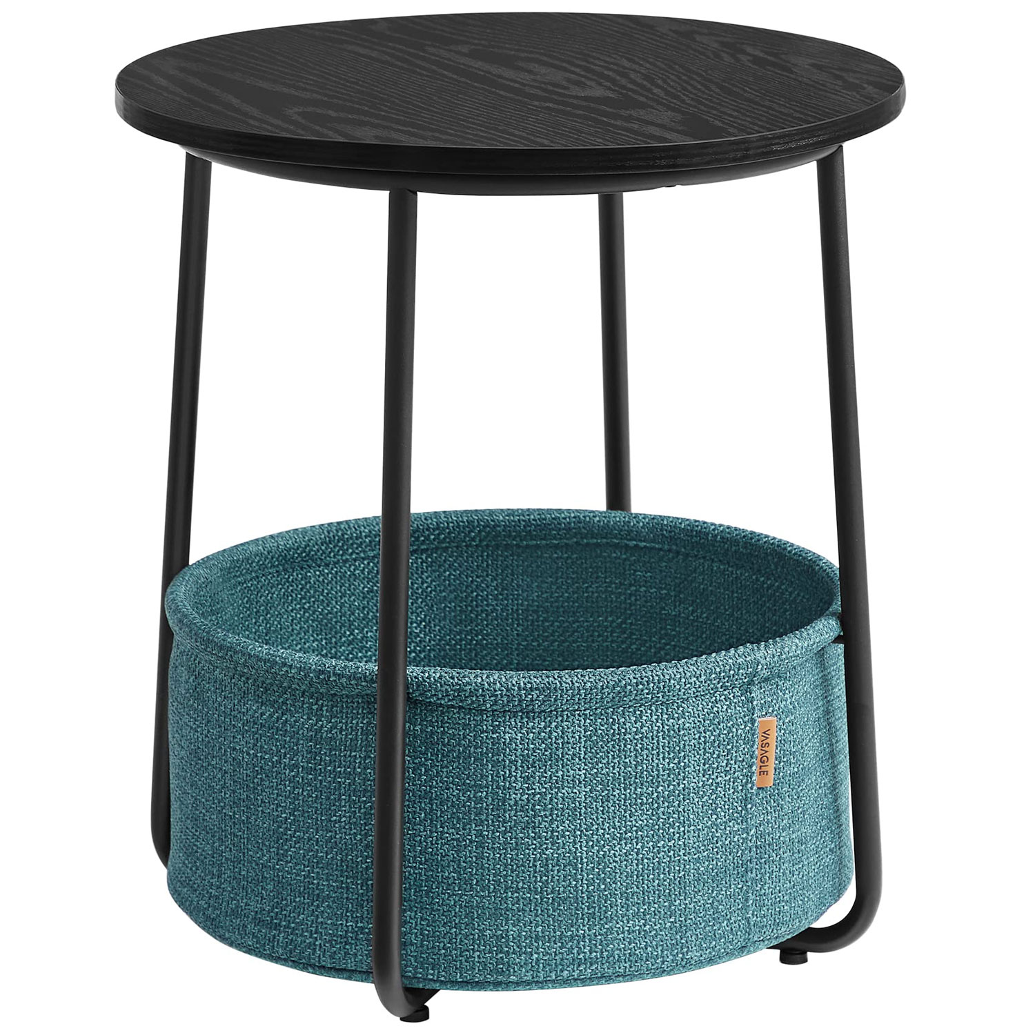 Măsuță de cafea rotundă Vasagle cu coș textil, 45x50 cm, negru