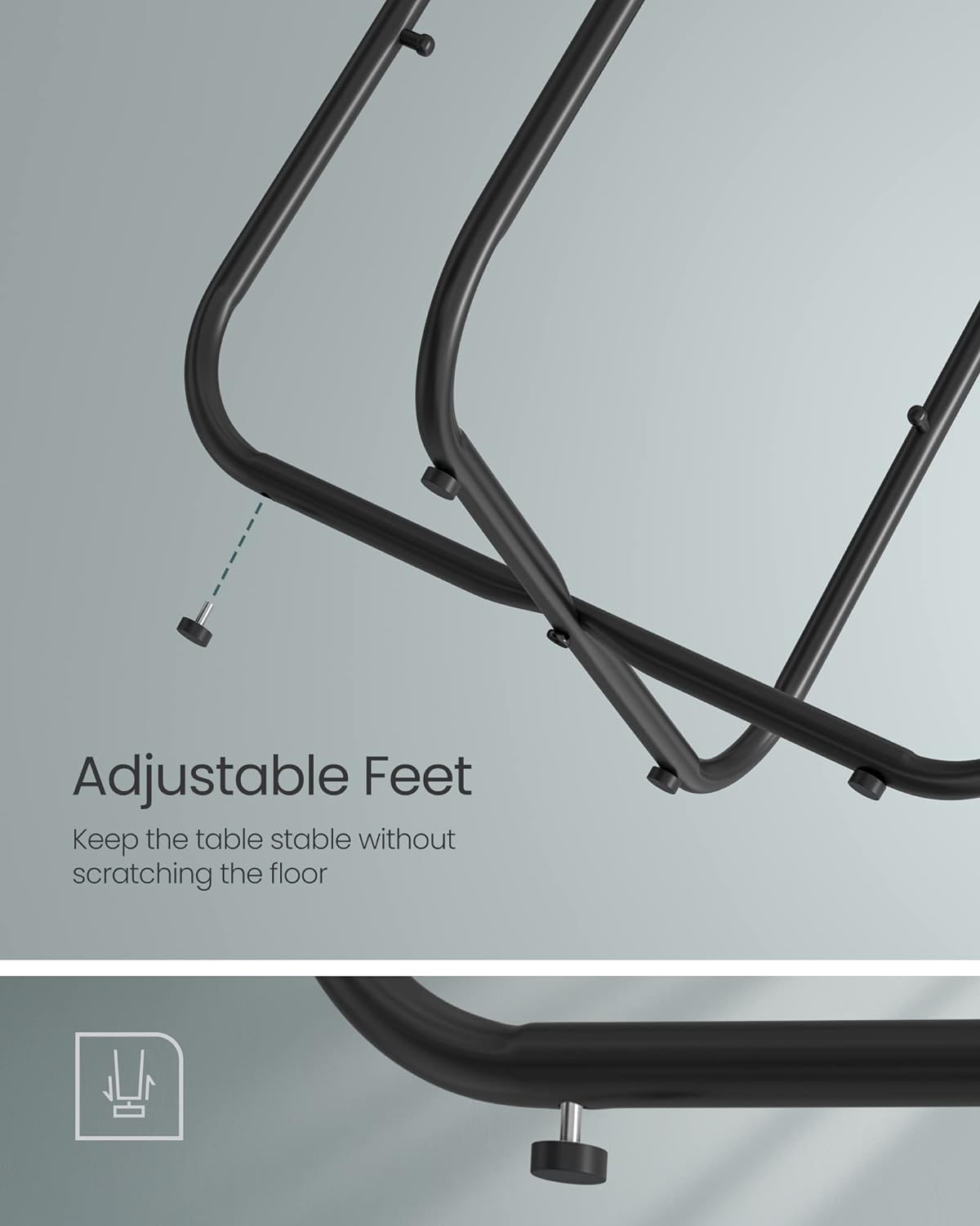 - Picioare reglabile pentru mai multă stabilitate și protecția podelei
