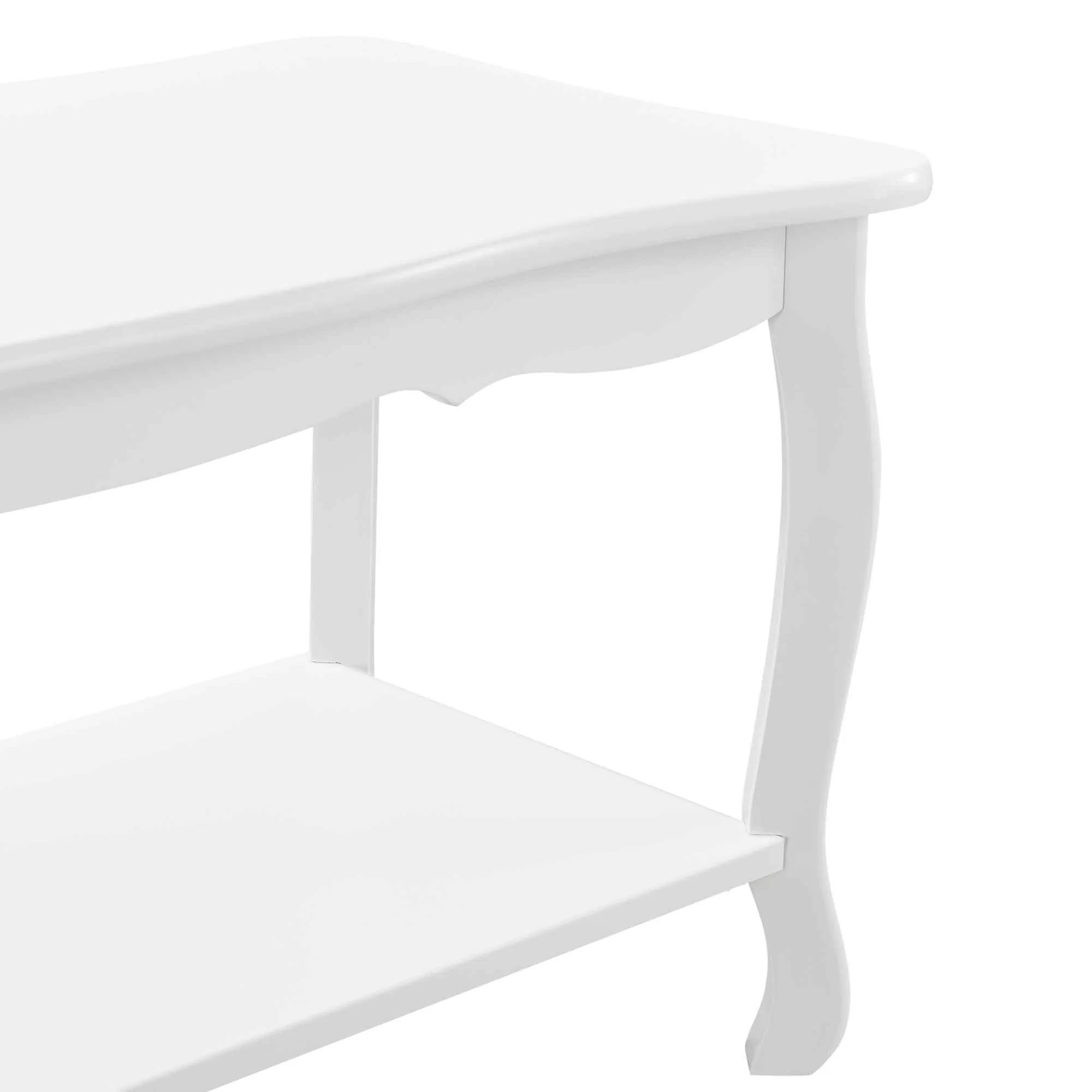 Masuta de Cafea Shabby Chic, Stil Vintage Baroc, Material MDF/Lemn de Brad Lacuit, Culoare Alb, Dimensiuni 87x40x42 cm