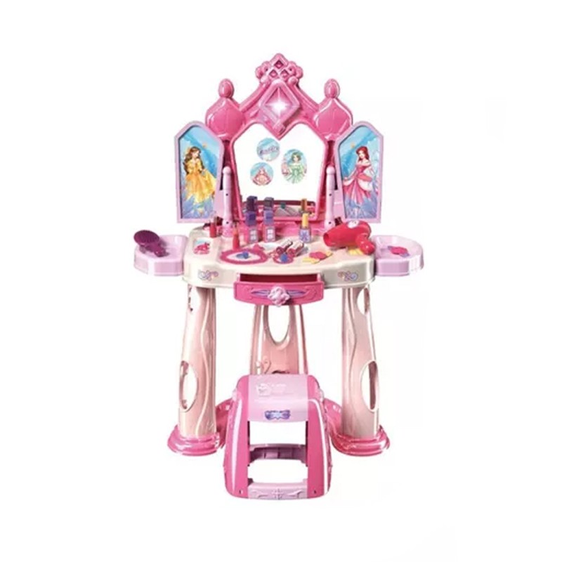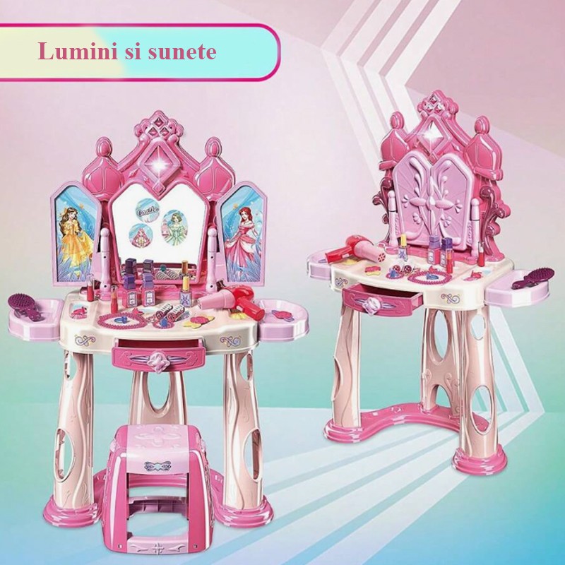 Măsuță de machiaj pentru fetițe cu oglindă, lumini, muzică și accesorii, roz