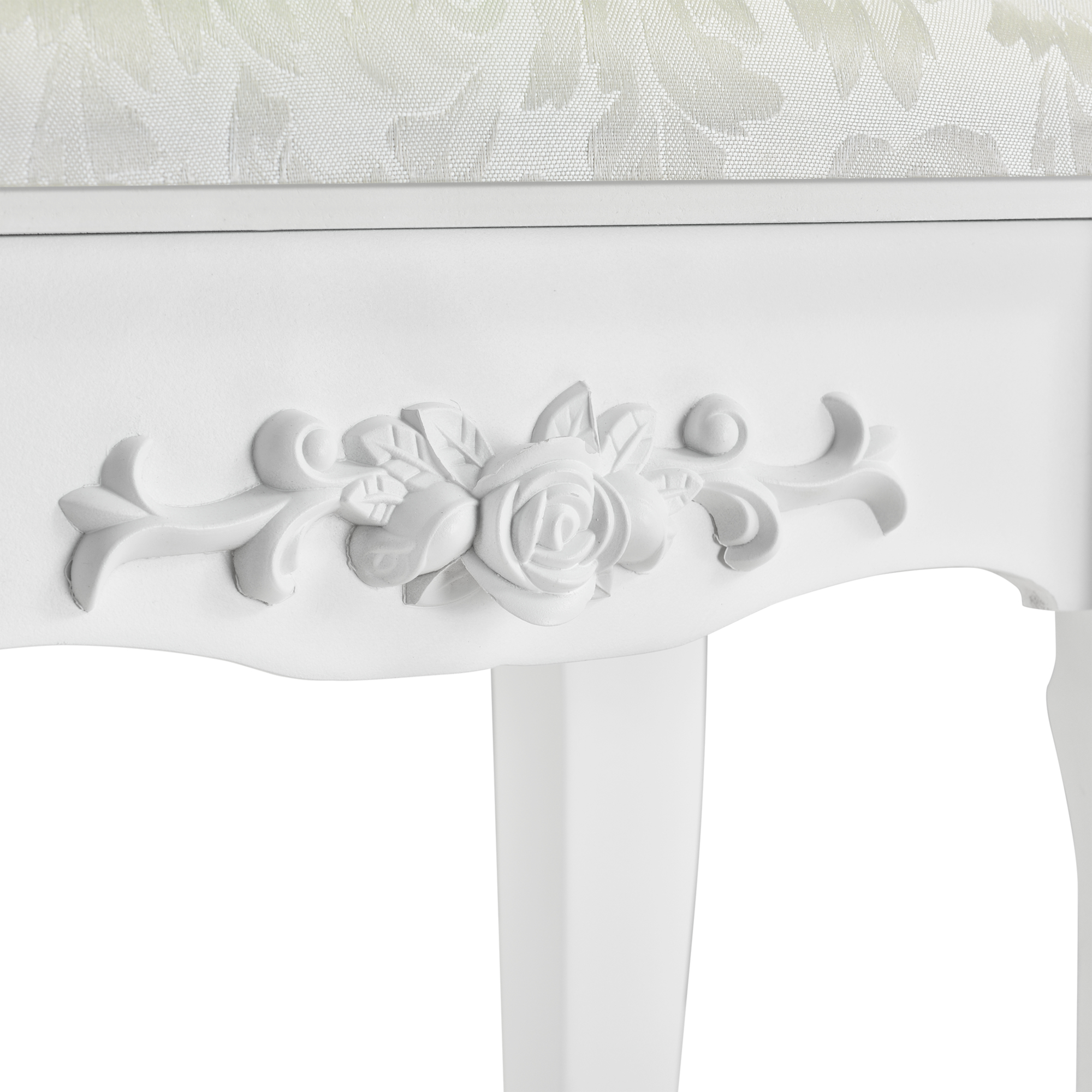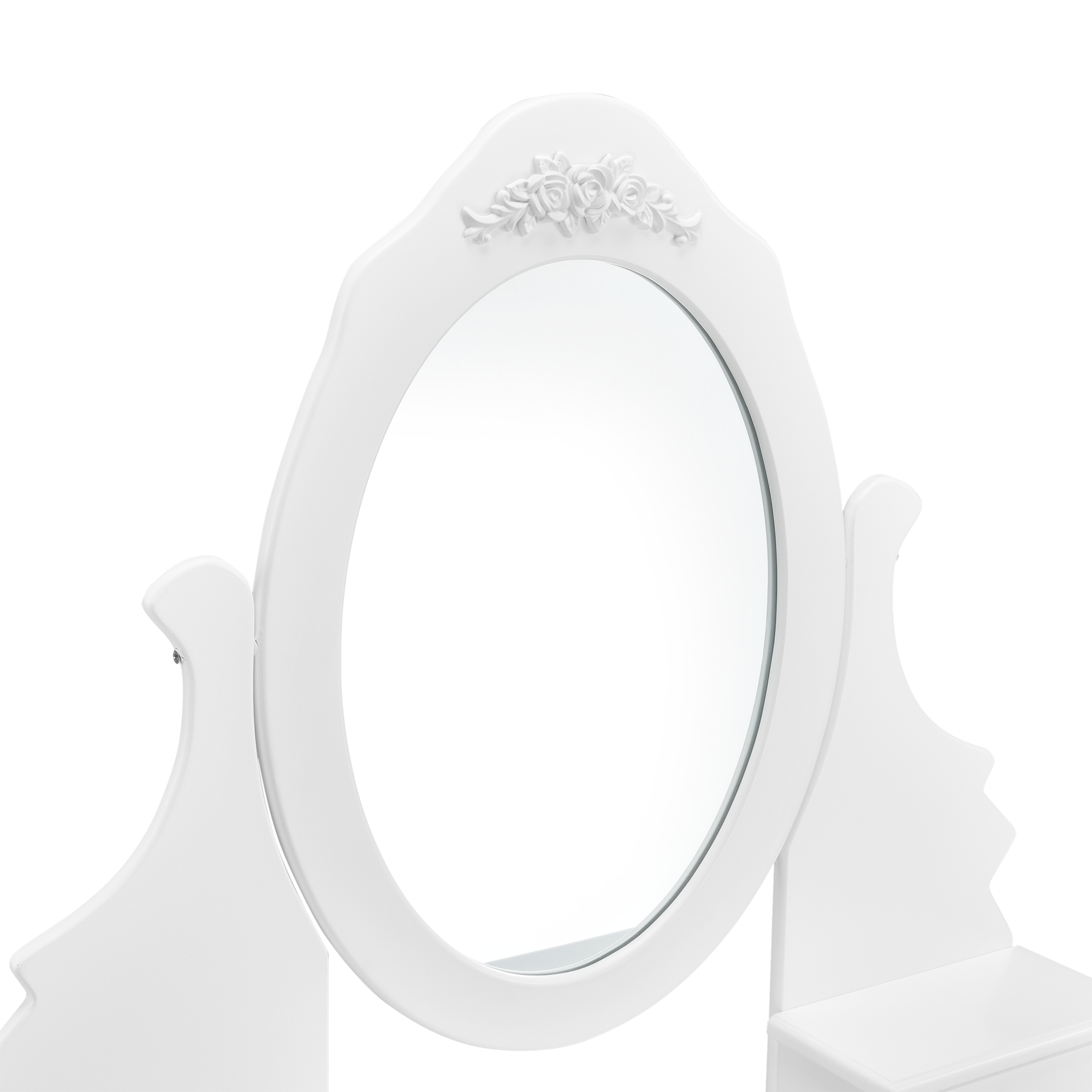 Măsuța de toaletă Limerick cu oglindă și taburet este alegerea ideală pentru un colț de înfrumusețare elegant și practic. Designul alb, cu detalii florale decorative, se integrează ușor în dormitor sau dressing, oferind un spațiu dedicat pentru machiaj, coafare și organizarea accesoriilor.