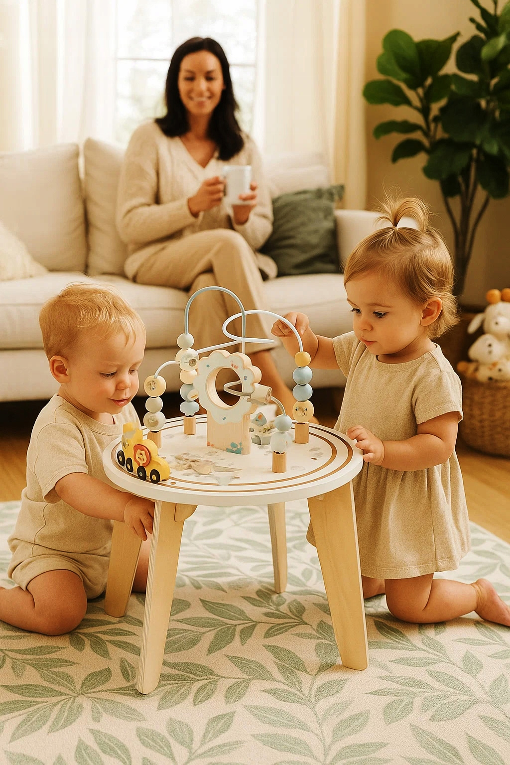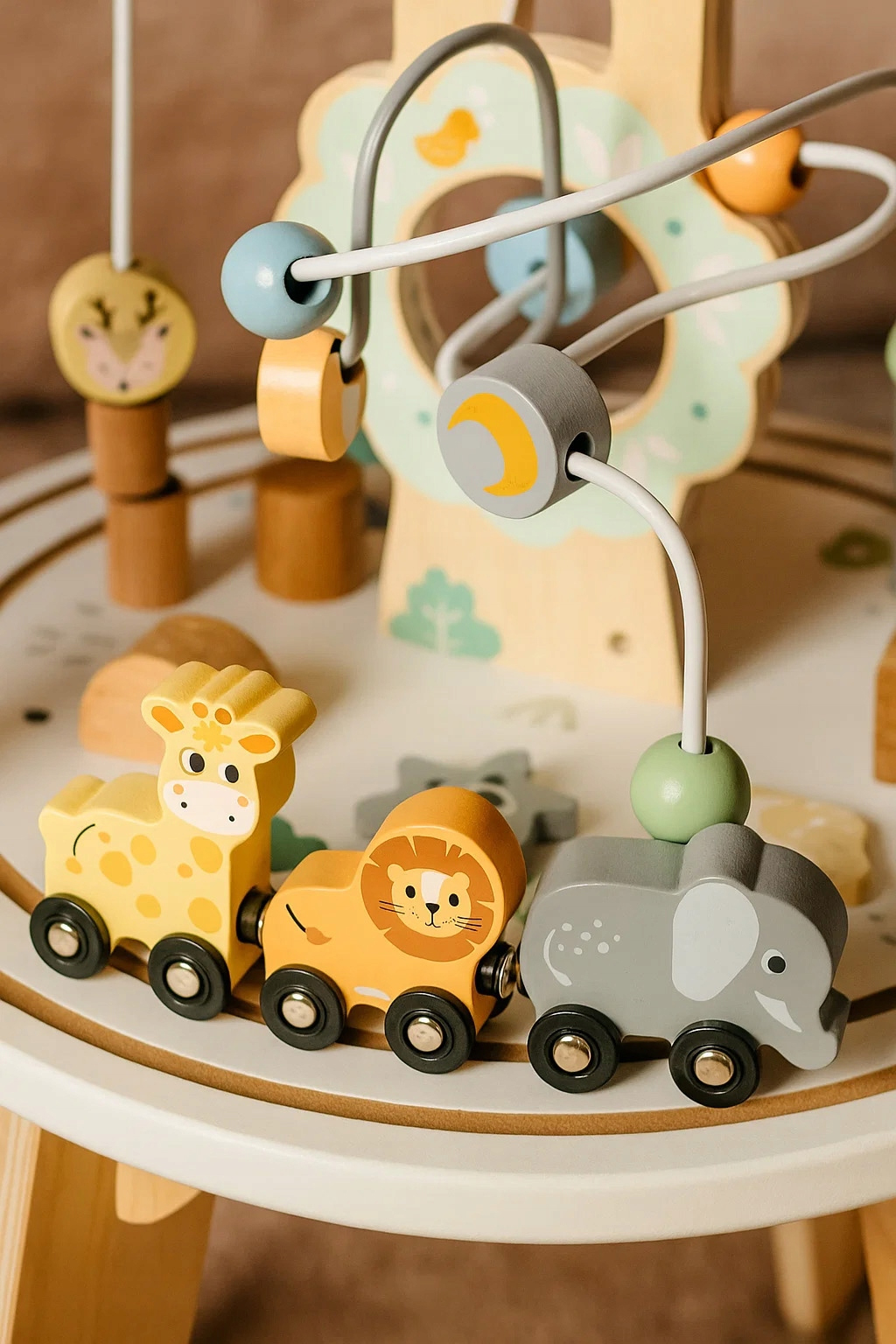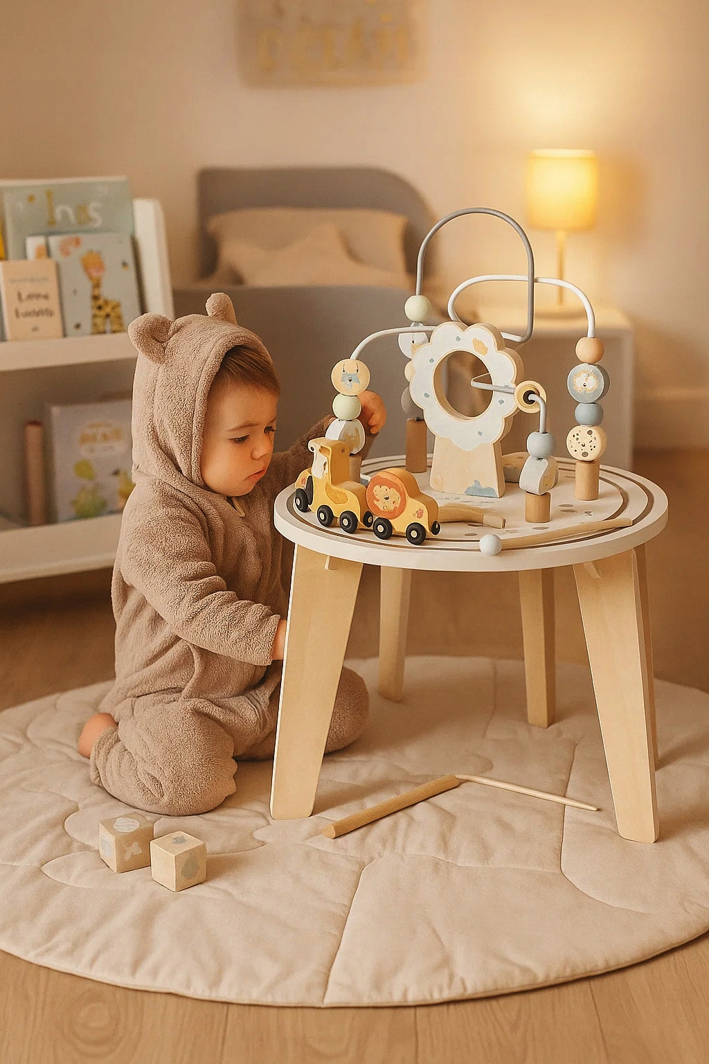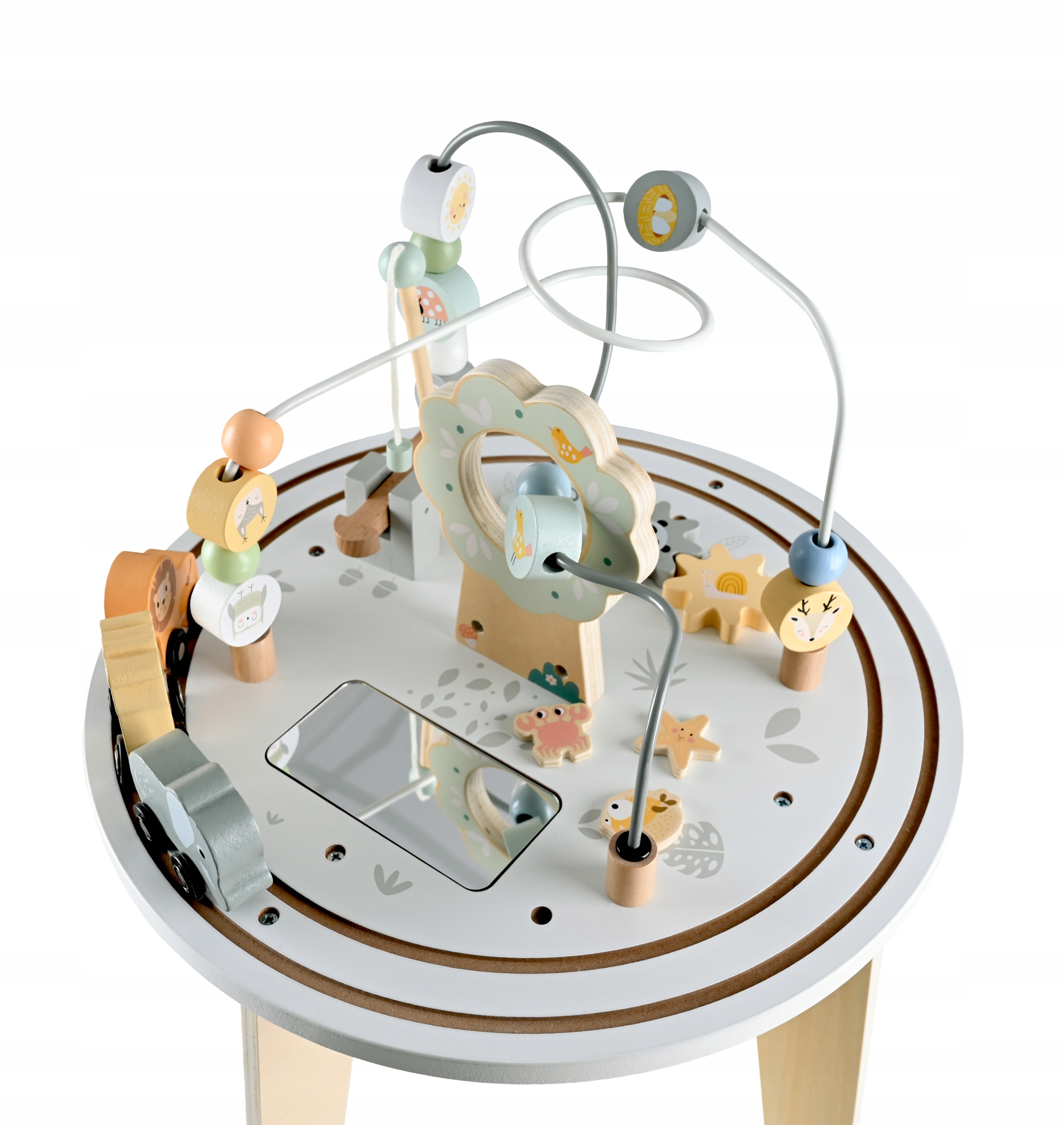 Descoperă o măsuță interactivă din lemn pentru copii creată pentru joacă educativă și dezvoltare armonioasă. Cu un design stabil, finisaje plăcute și activități variate pe blat, această măsuță cu labirint și jocuri motorii stimulează curiozitatea, coordonarea mână-ochi și îndemânarea celor mici. Culorile pastelate și elementele simpatice inspirate din natură o fac potrivită pentru orice cameră de copil.