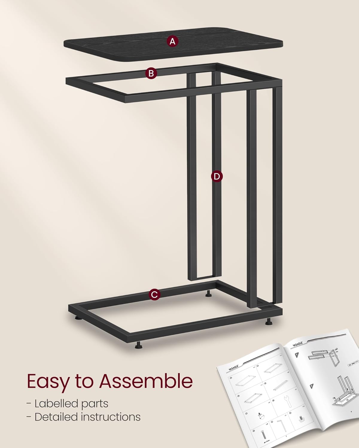 Descriere Măsuță laterală VASAGLE tip C, stil