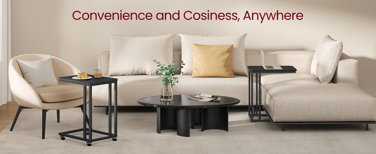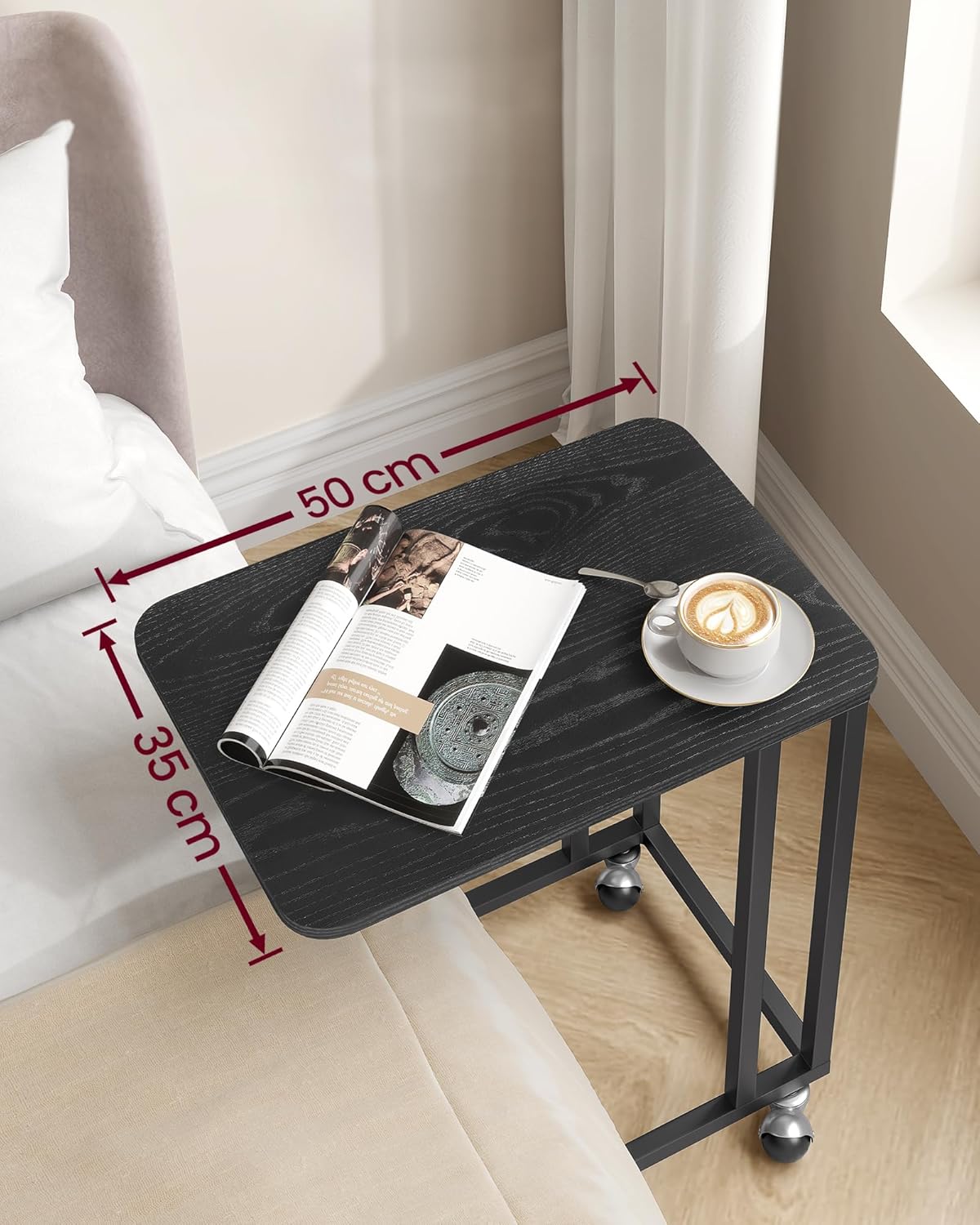 Utilizare: Poți folosi această măsuță de cafea laterală pentru micul dejun la pat, pentru lucru pe laptop, pentru telecomenzi, căni, reviste sau alte obiecte pe care vrei să le ai la îndemână. Pentru glisarea sub canapea sau pat este necesar un spațiu liber de minimum 7 cm.