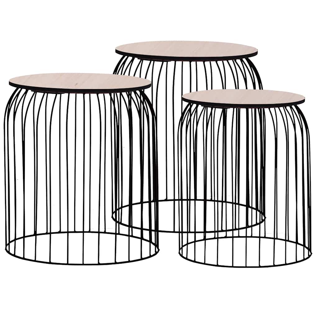 Acest set de 3 măsuțe de cafea emană un farmec vintage și va adăuga un plus de distincție decorului dvs. de acasă. Pot fi folosite și ca mese de canapea, coșuri de depozitare, mese laterale etc.
