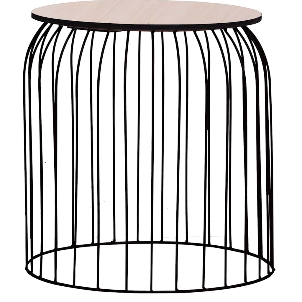 Blatul din lemn masiv asigură o suprafață stabilă și netedă, pe care puteți așeza băuturi, vaze sau alte obiecte decorative. Prin îndepărtarea blatului, puteți transforma masa laterală într-un coș de depozitare. În plus, masa mai mică poate fi așezată în interiorul celei mai mari pentru a economisi spațiu. Cadrul de metal rezistent vopsit electrostatic completează construcția robustă și oferă setului un aspect industrial.