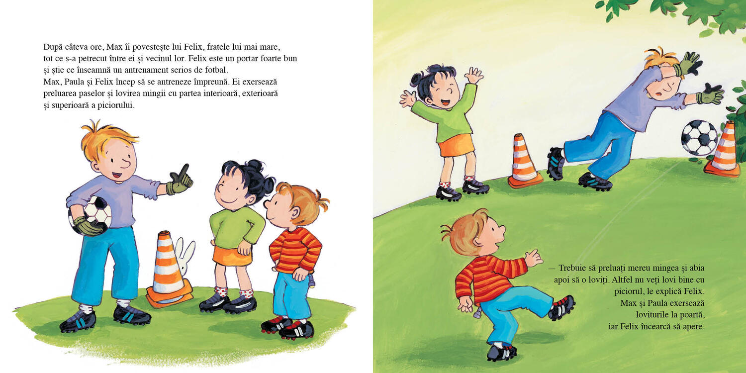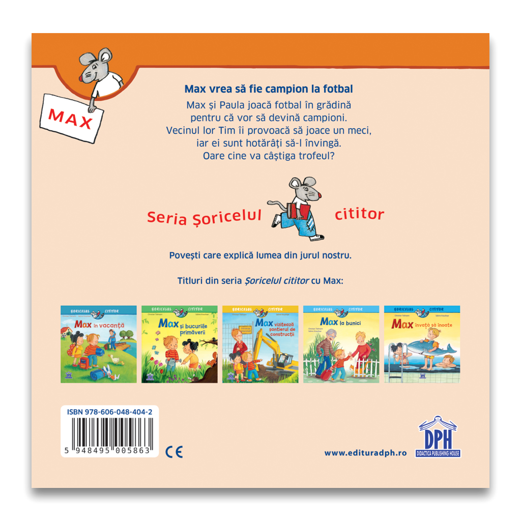 Max vrea sa fie campion la fotbal este o carte ilustrata pentru copii plina de energie, competitie si voie buna, perfecta pentru micii pasionati de sport. Povestea ii urmareste pe Max si Paula, care se antreneaza cu entuziasm pentru a castiga un meci important impotriva vecinului Tim. Lectura este potrivita pentru copiii de peste 3 ani si transforma tema fotbalului intr-o aventura usor de inteles, distractiva si educativa.