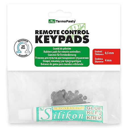 Pachetul contine role de cauciuc conductor si adeziv siliconic, pentru reparații telecomenzi.