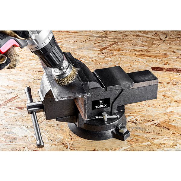 - Baza pivotanta permite sa fixati piesa de prelucrat in cea mai confortabila pozitie pentru lucru