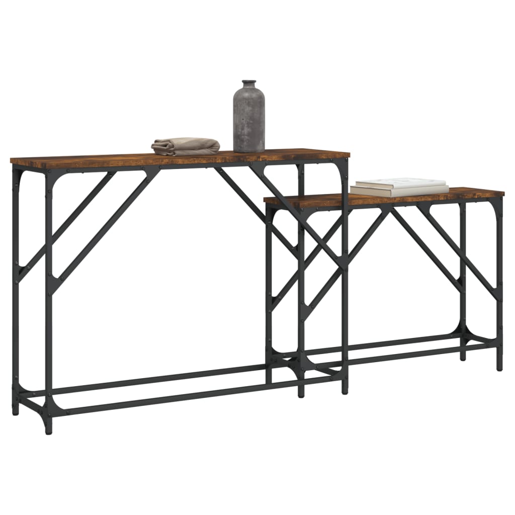 Mese console suprapuse, 2 buc, stejar fumuriu, lemn prelucrat GartenMobel Dekor