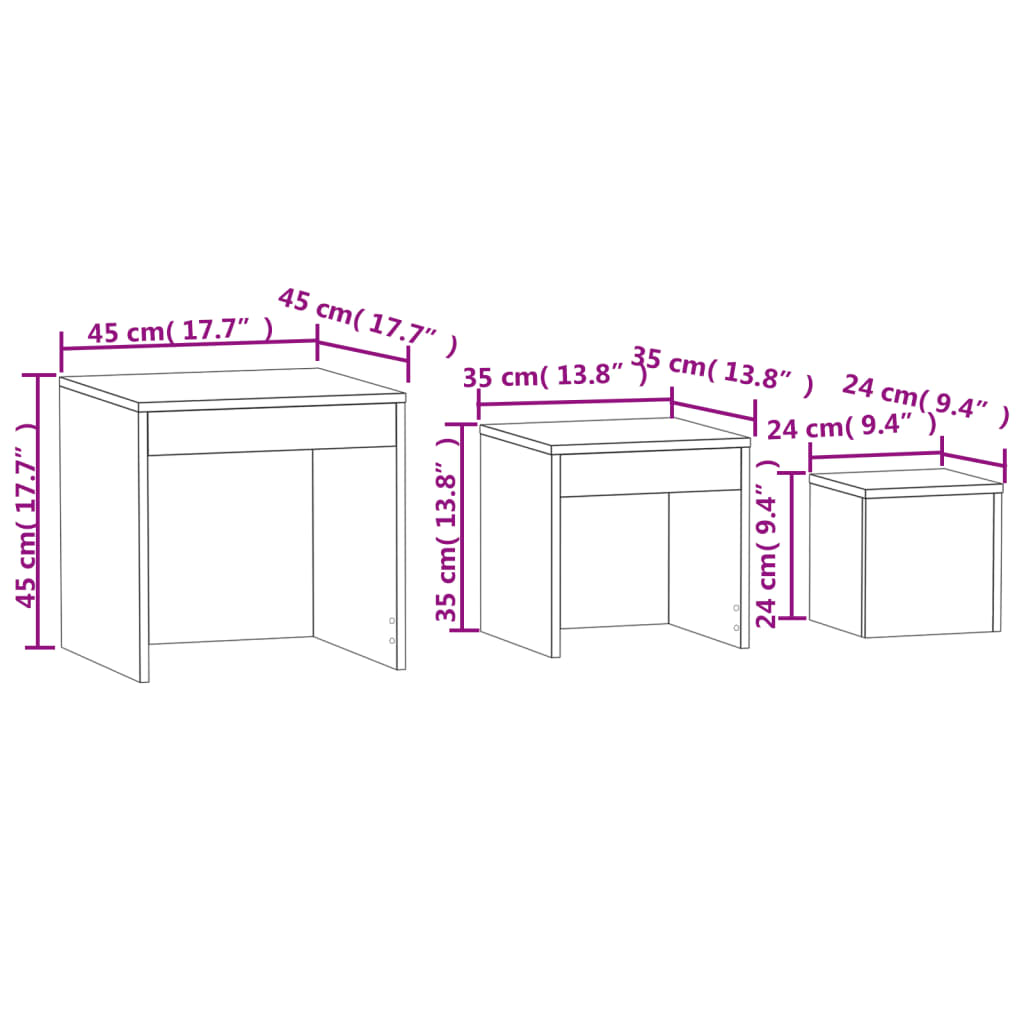 Specificatii Mese suprapuse, 3 buc, stejar Sonoma