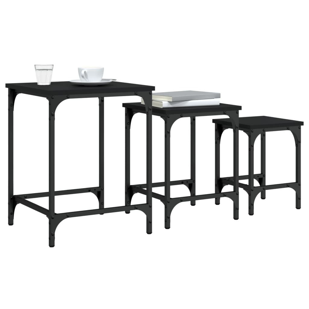 Mese suprapuse de cafea, 3 buc, negru, lemn prelucrat GartenMobel Dekor