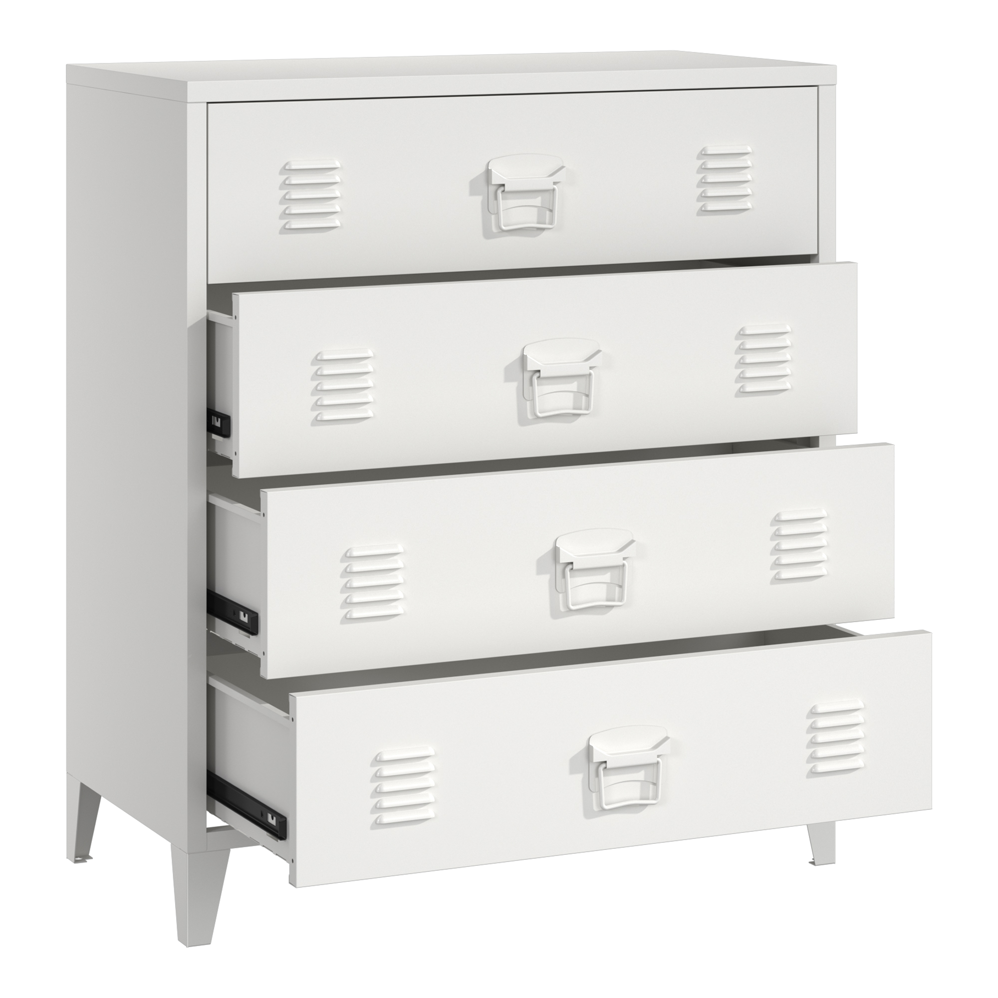 - Vier geräumige Schubladen mit Lüftungsschlitzen
