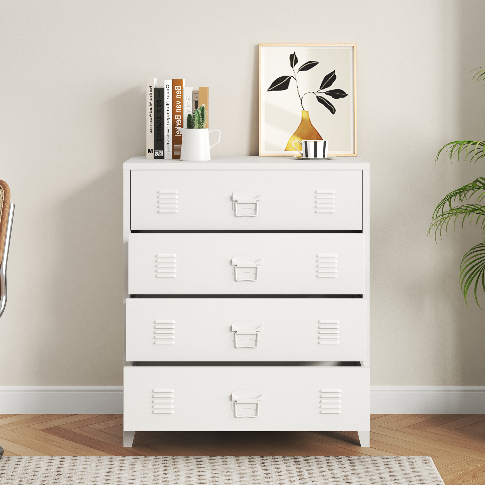 Metallkommode mit 4 Schubladen Hämeenlinna 80x40x92 cm Weiß [en.casa]