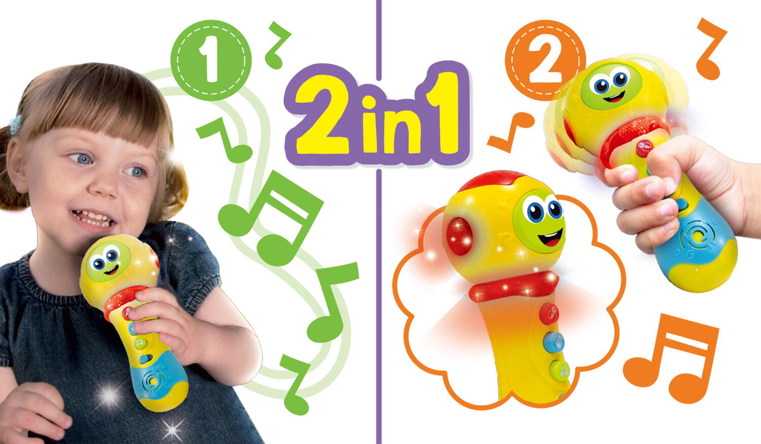 Microfonul 2 in 1 pentru copii este o jucarie interactiva si vesela, perfecta pentru micutii care adora muzica, luminile si jocurile de rol. Cu efecte sonore si luminoase atractive, acest microfon pentru copii transforma fiecare moment de joaca intr-un mic spectacol plin de distractie. Este potrivit pentru stimularea creativitatii, a imaginatiei si a dezvoltarii multisenzoriale inca de la cele mai fragede varste.