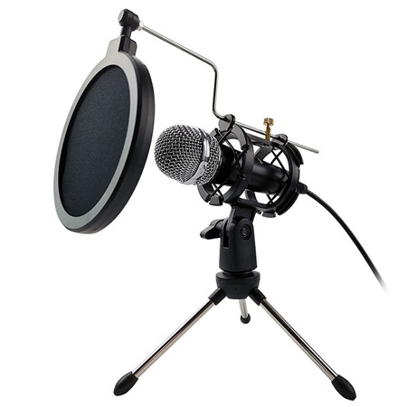 Microfon Gaming Omnidirectional, cu Trepied de Masa si Filtru Pop, Conectare Jack 3.5mm, Culoare Negru