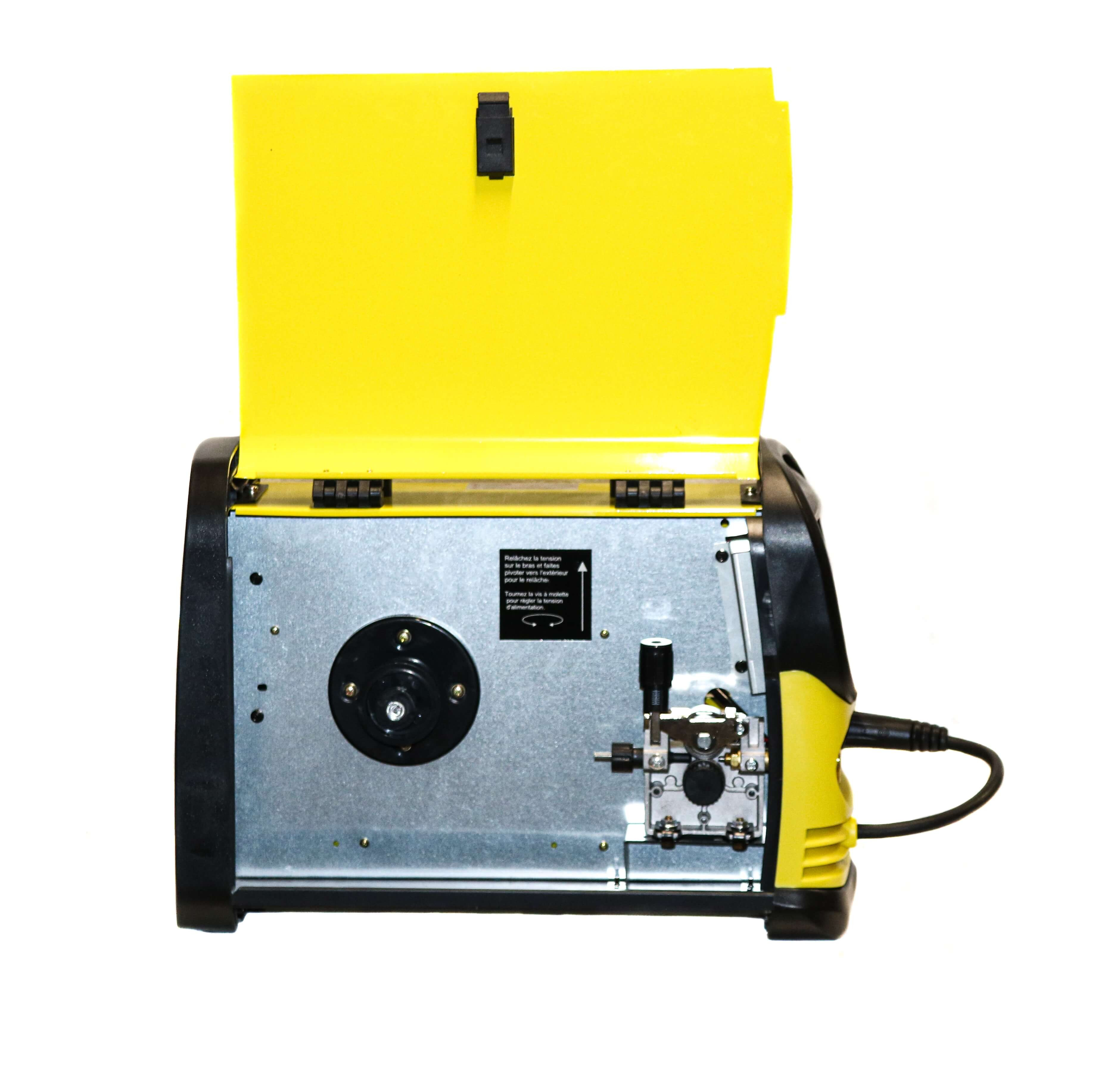 Reglaje Precise: Ajustati curentul de sudura, viteza sarmei si tensiunea pentru MIG-MAG cu potentiometrul.