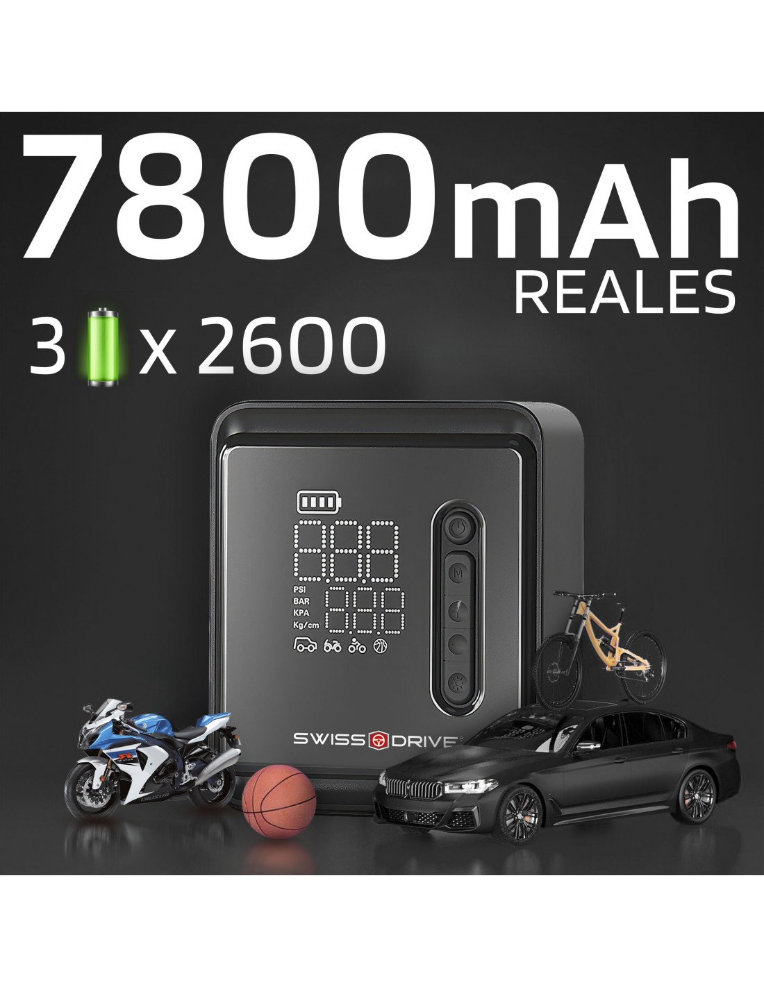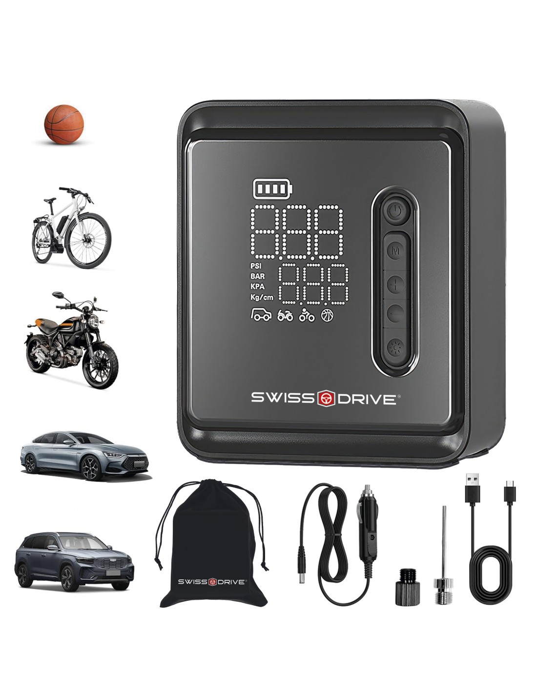 5 moduri presetate: selecteaza cu usurinta presiunea pentru masina, motocicleta, bicicleta sau mingi