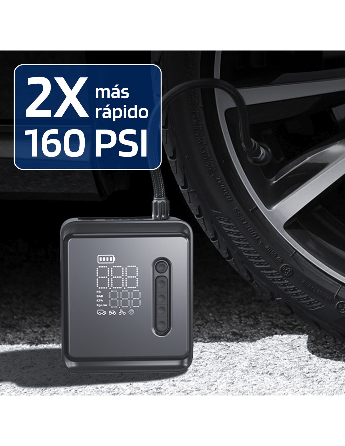 Putere ridicata: 150 PSI / 10.3 Bar, motor de 120W pentru umflare rapida