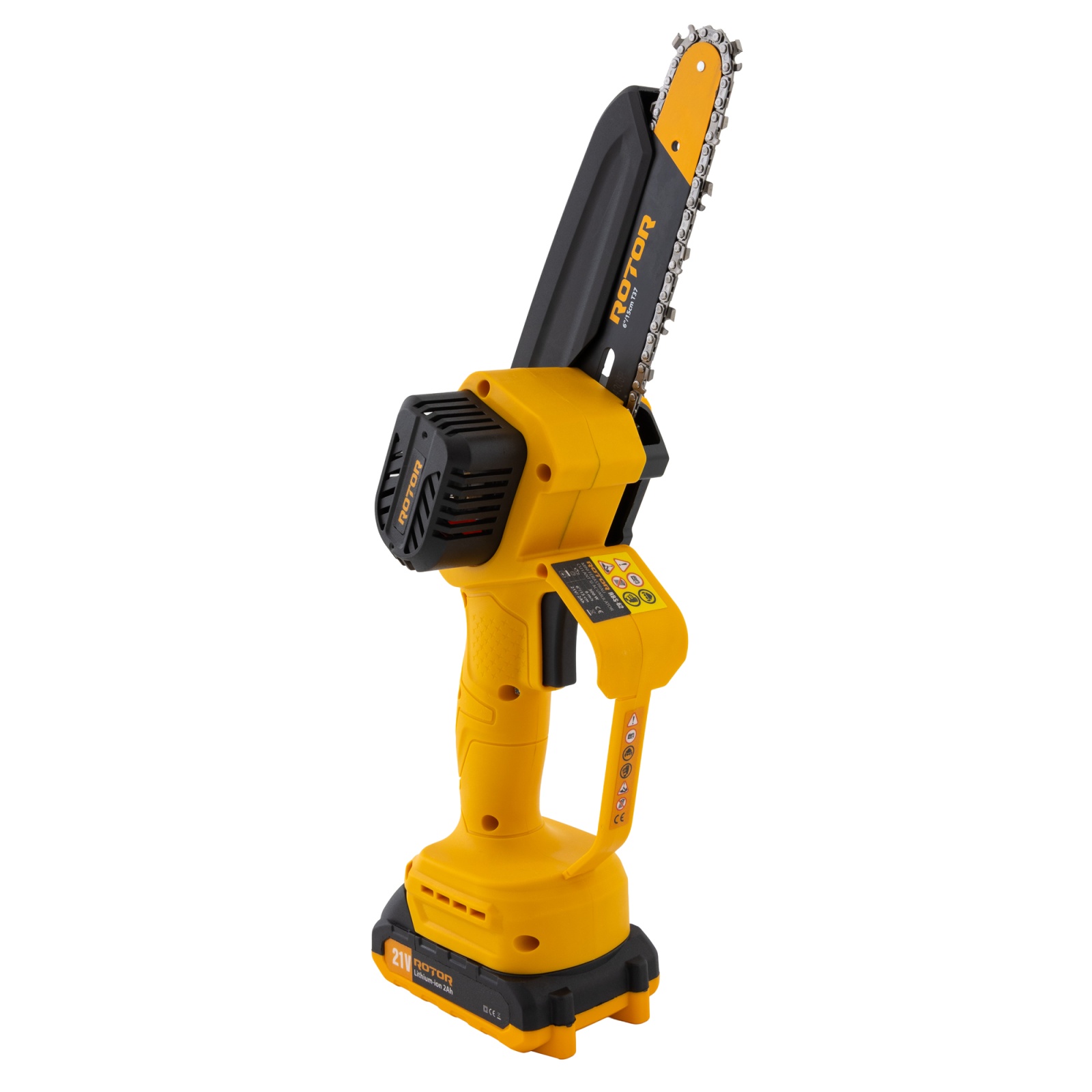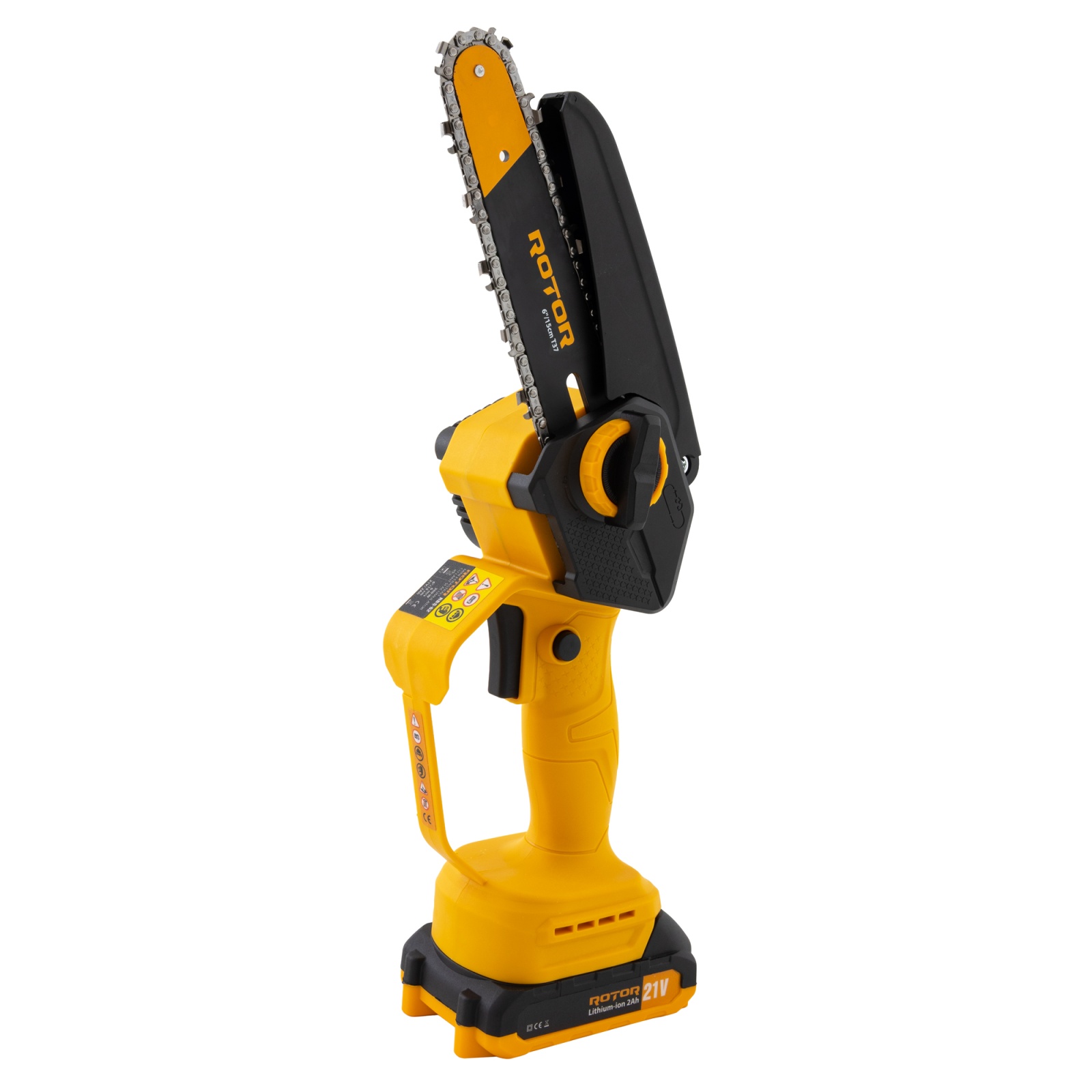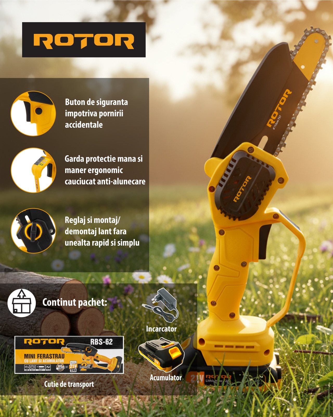 Mini drujbă cu lanț Rotor RBS-62, lamă 6", acumulator 21V 2Ah, încărcător