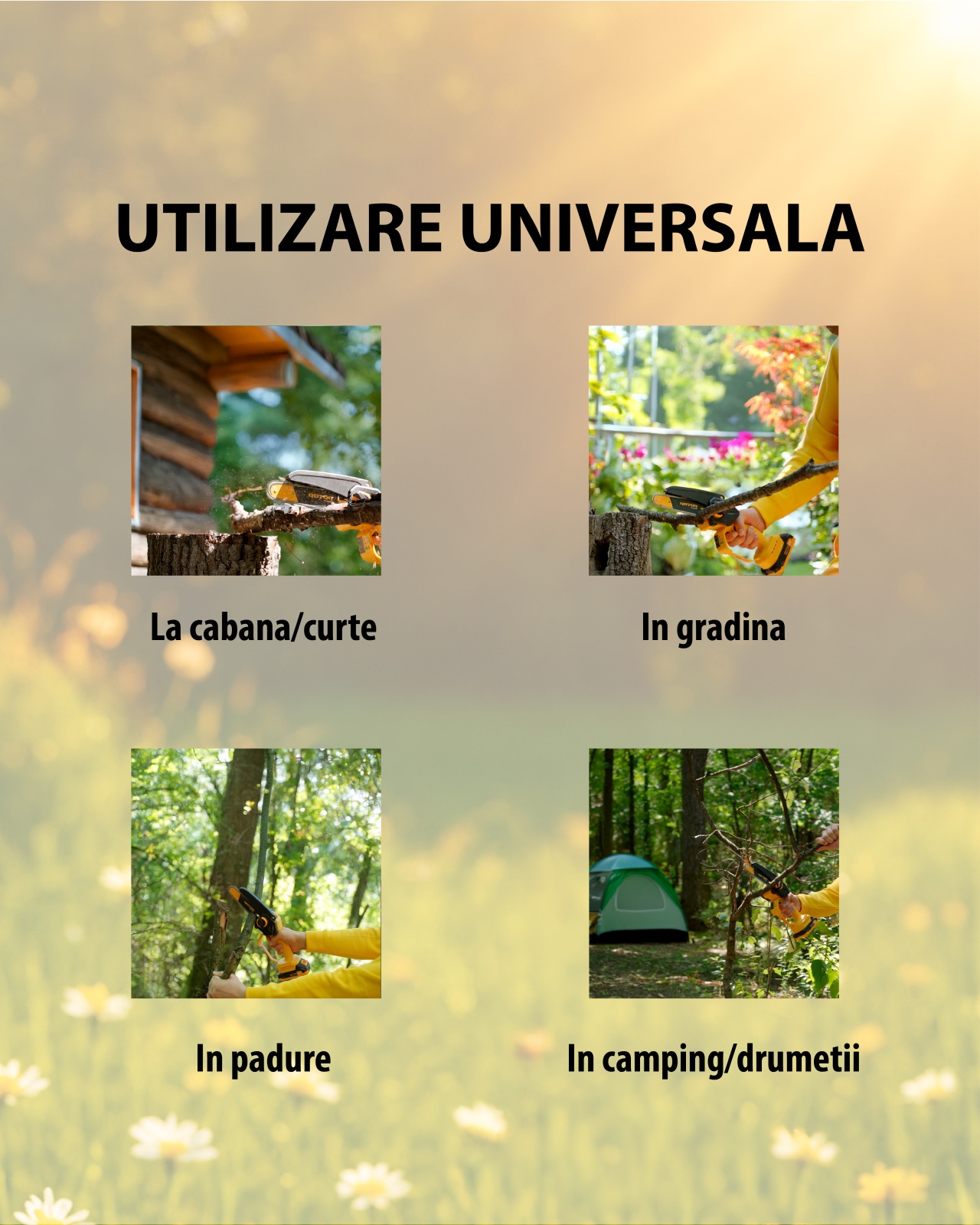 - Mobilitate totală: funcționează pe baterie, ideală pentru grădină și gospodărie