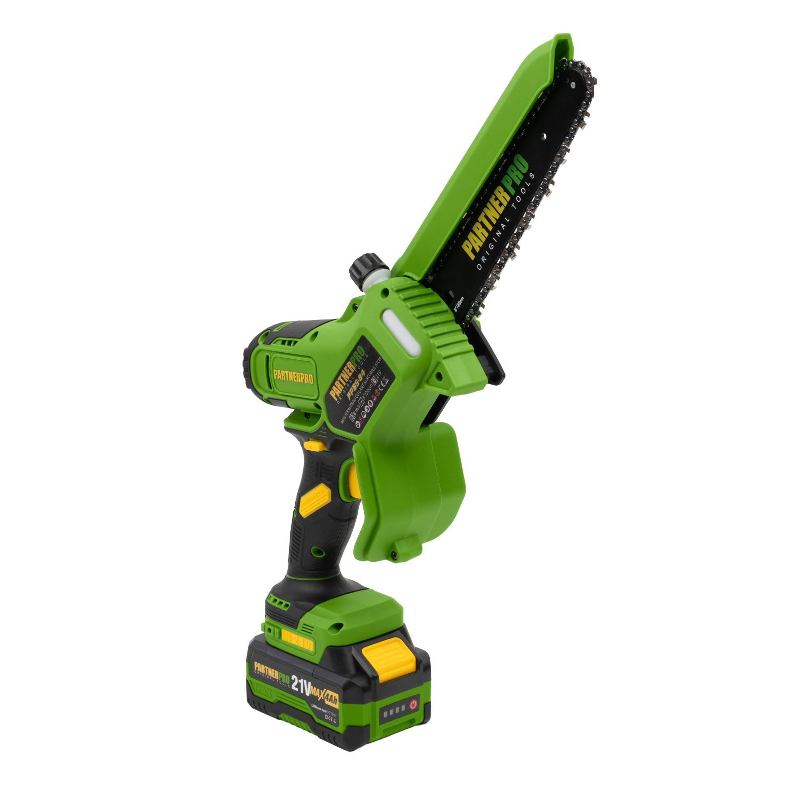 Mini Fierăstrău cu Lanț și Acumulator PPBS-84 PARTNERPRO, Brushless, 21V / 4Ah, Indicator sarcină Innovative ReliableTools