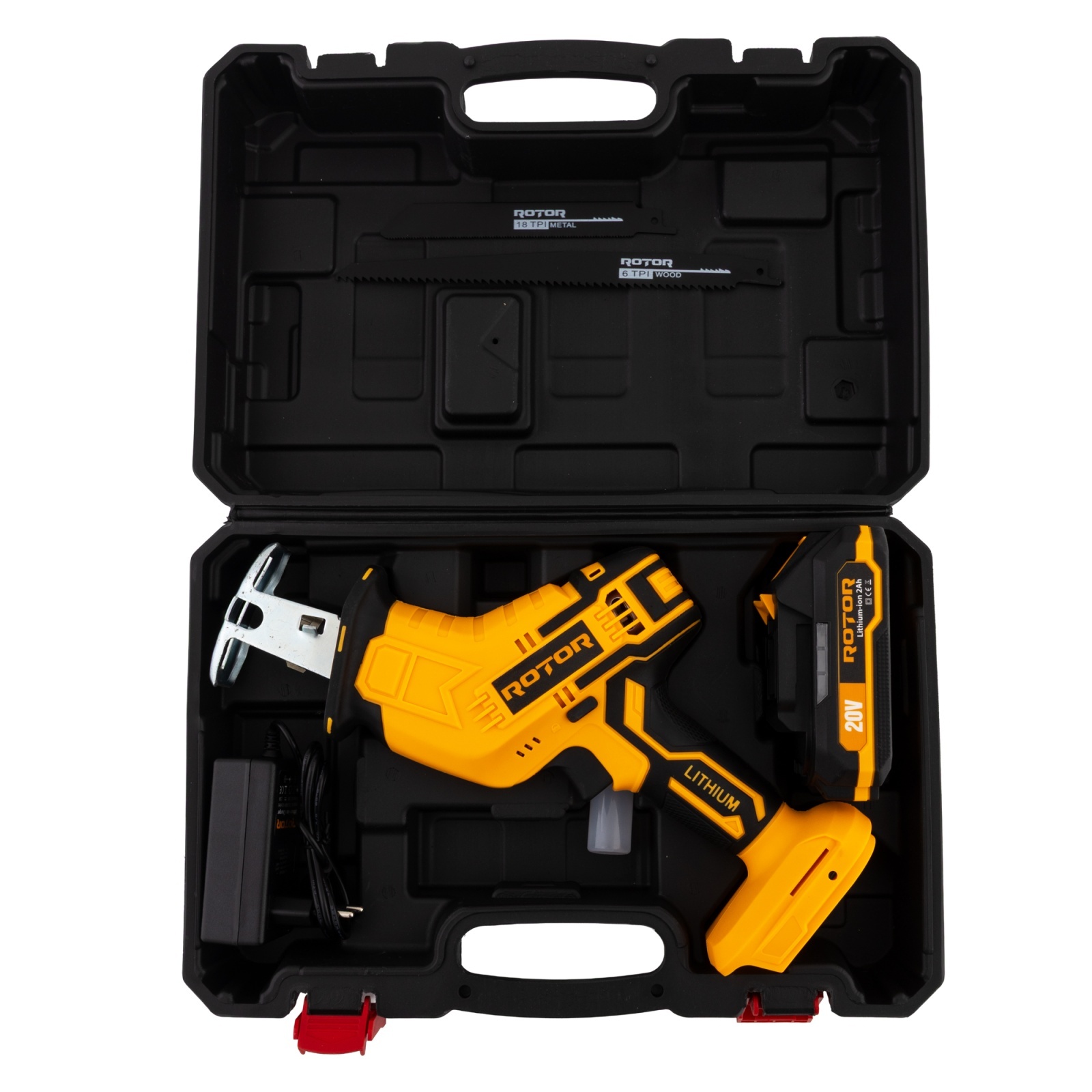 Mini fierăstrău tip sabie cu acumulator Rotor R-FS2A 20V 2Ah, Brushless, 3 lame