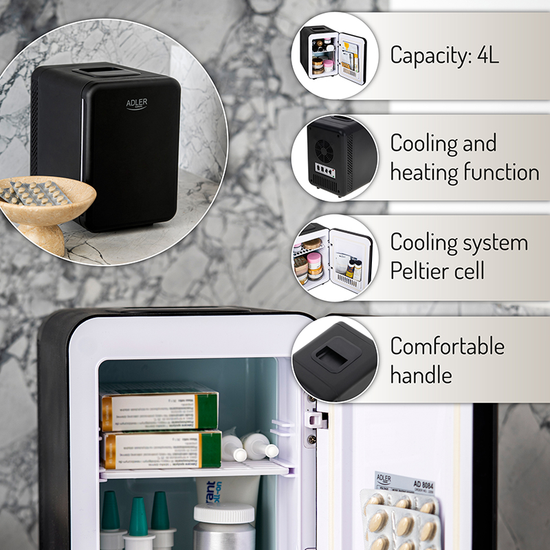 Mini frigider portabil Adler AD 8084, 4L, răcire și încălzire, auto/casă
