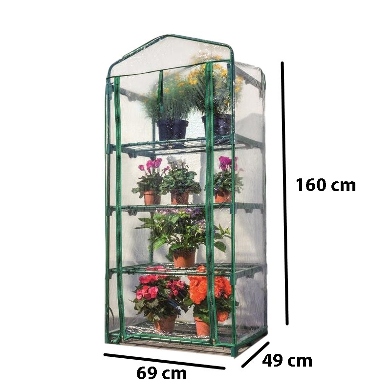 Mini solar vertical de grădină cu 4 niveluri, ușă rulou cu fermoar, 160x69x49 cm