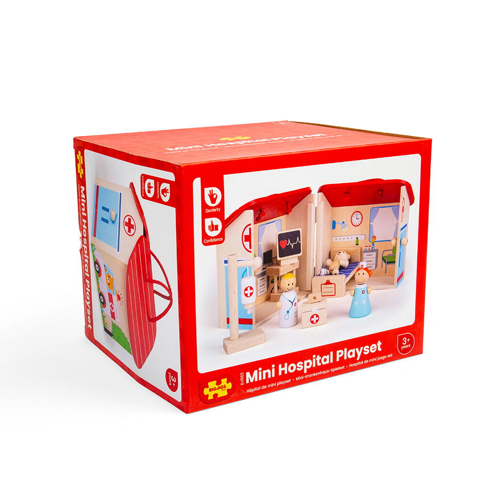 Mini spital veterinar din lemn pentru copii este o jucarie educativa si distractiva, perfecta pentru micii iubitori de animale. Cei mici pot ingriji ursuletul pacient cu ajutorul accesoriilor incluse, inventand povesti si exersand prin joaca empatia, comunicarea si imaginatia. Designul in forma de spital, cu maner, face setul usor de transportat si depozitat.
