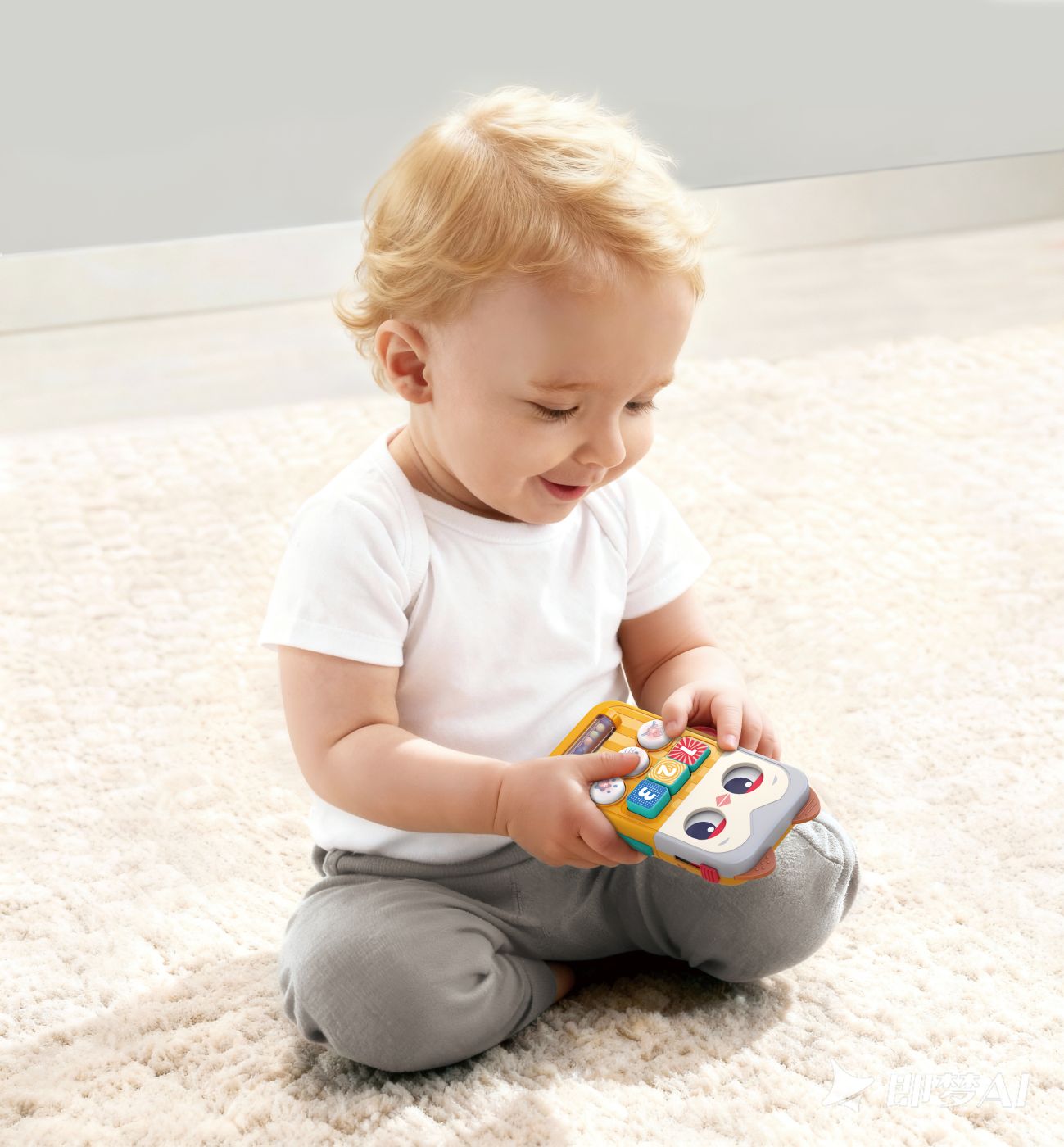 Copilul poate apasa butoanele frontale, explora simbolurile si interactiona cu elementul mobil cu bilute din partea inferioara. Jucaria este potrivita pentru sesiuni scurte si repetate de joaca, contribuind la invatarea prin descoperire si la dezvoltarea abilitatilor de baza.
