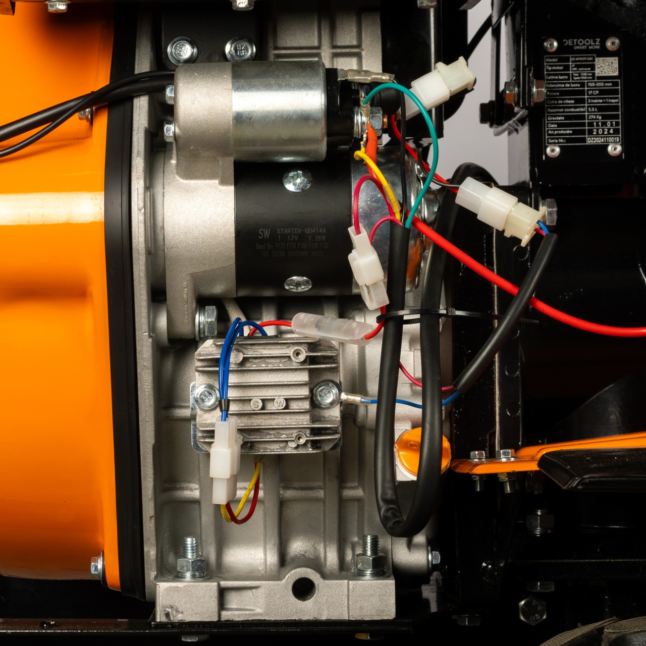 - Utilajul se livrează fără ulei în motor și în cutia de viteze. Completează uleiul conform manualului înainte de pornire.