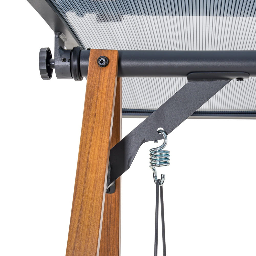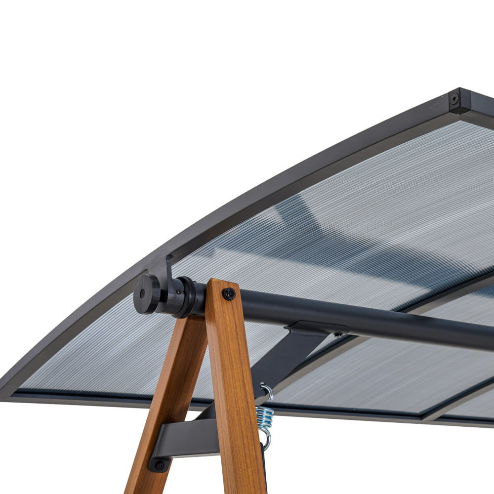 - Acoperișul din policarbonat este durabil și oferă protecție eficientă împotriva luminii solare excesive sau a ploii ușoare.