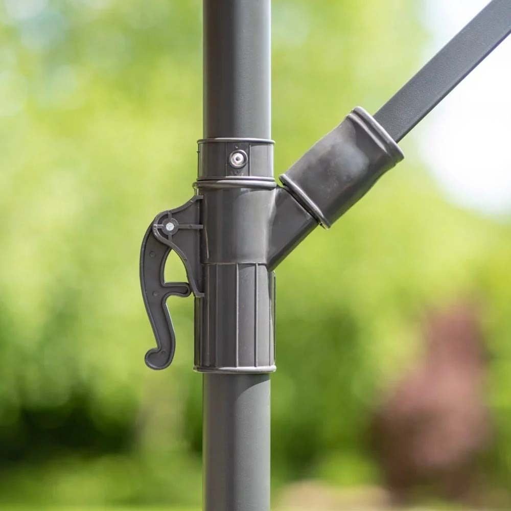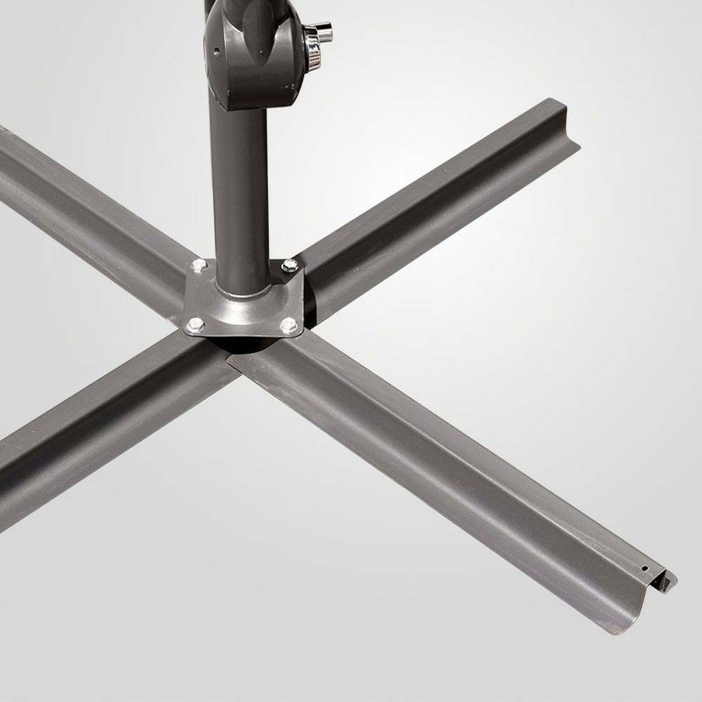 Stabilitatea unei umbrele de grădină este influențată semnificativ de baza în cruce . Pentru confortul dumneavoastră, este atașat un mâner pentru a plia și deplia produsul. Copertina de deasupra suportului vă permite să o poziționați oriunde și să alegeți orice locație de umbrire în funcție de unghiul luminii solare. Gură de aerisire a copertinei permite circulația aerului.